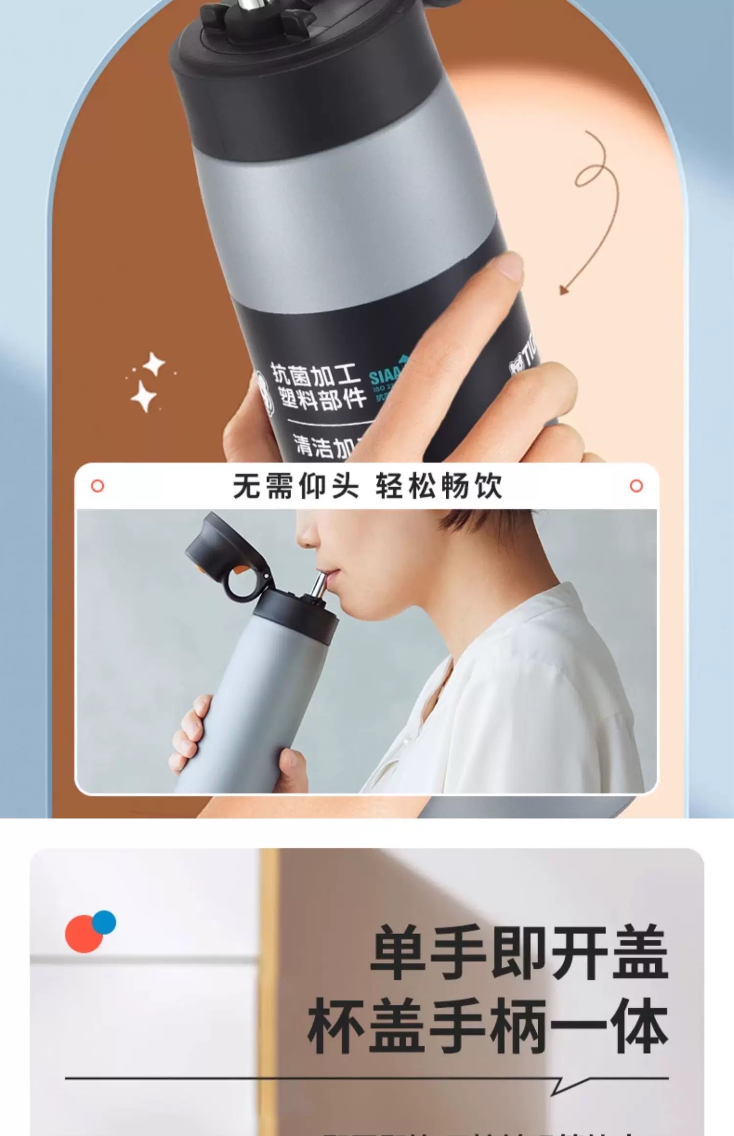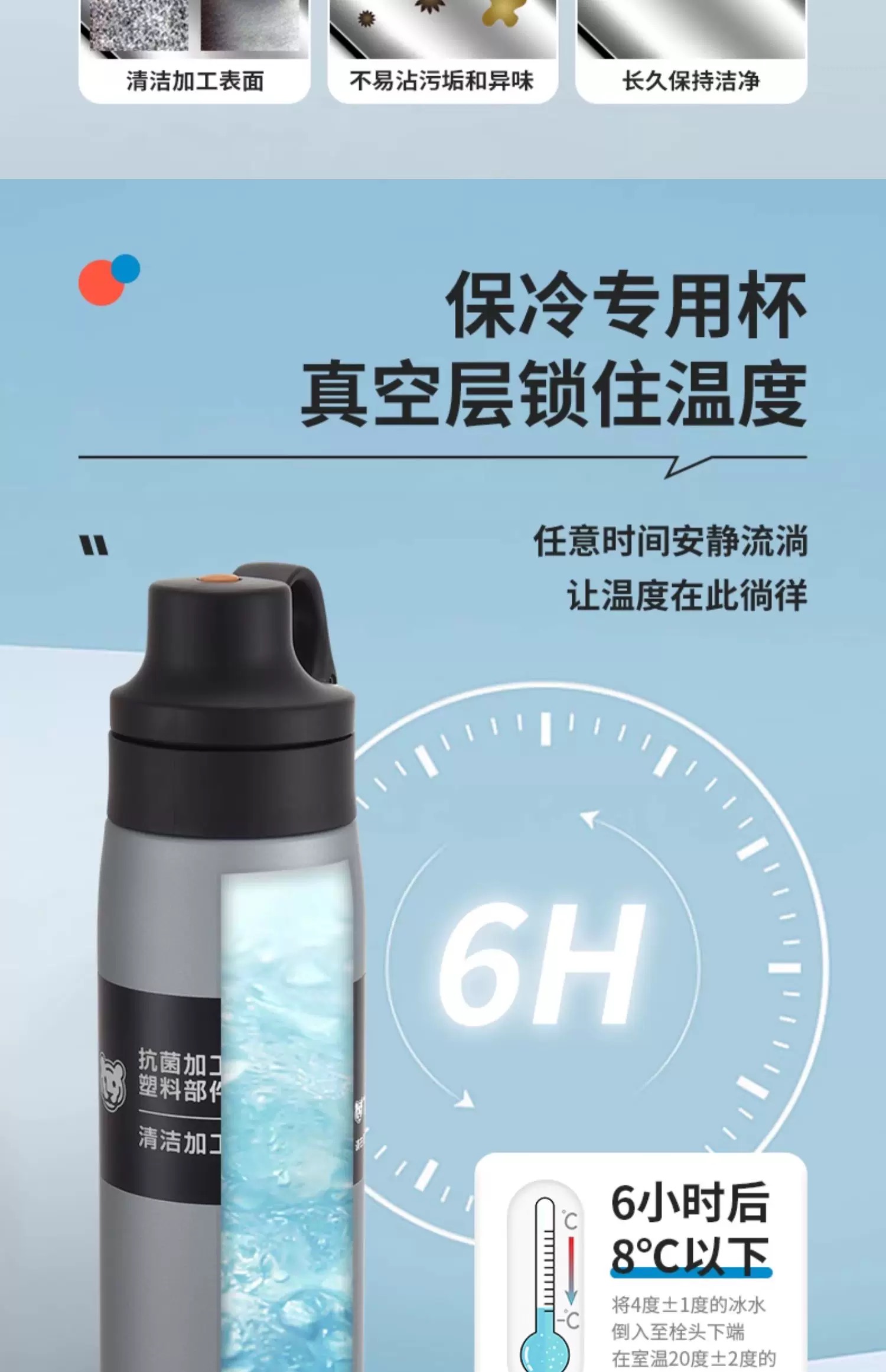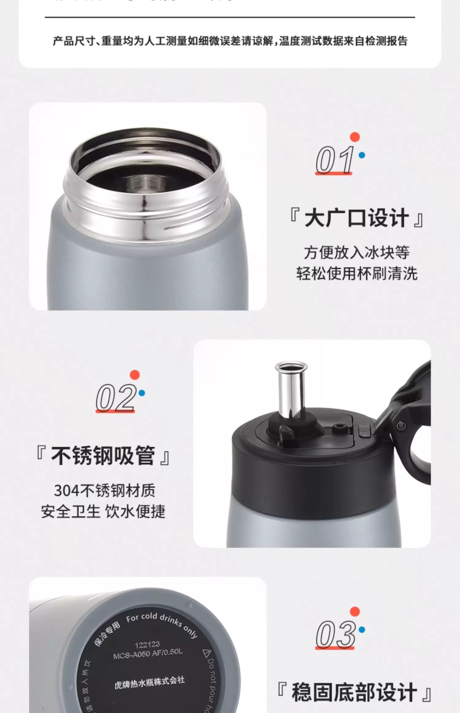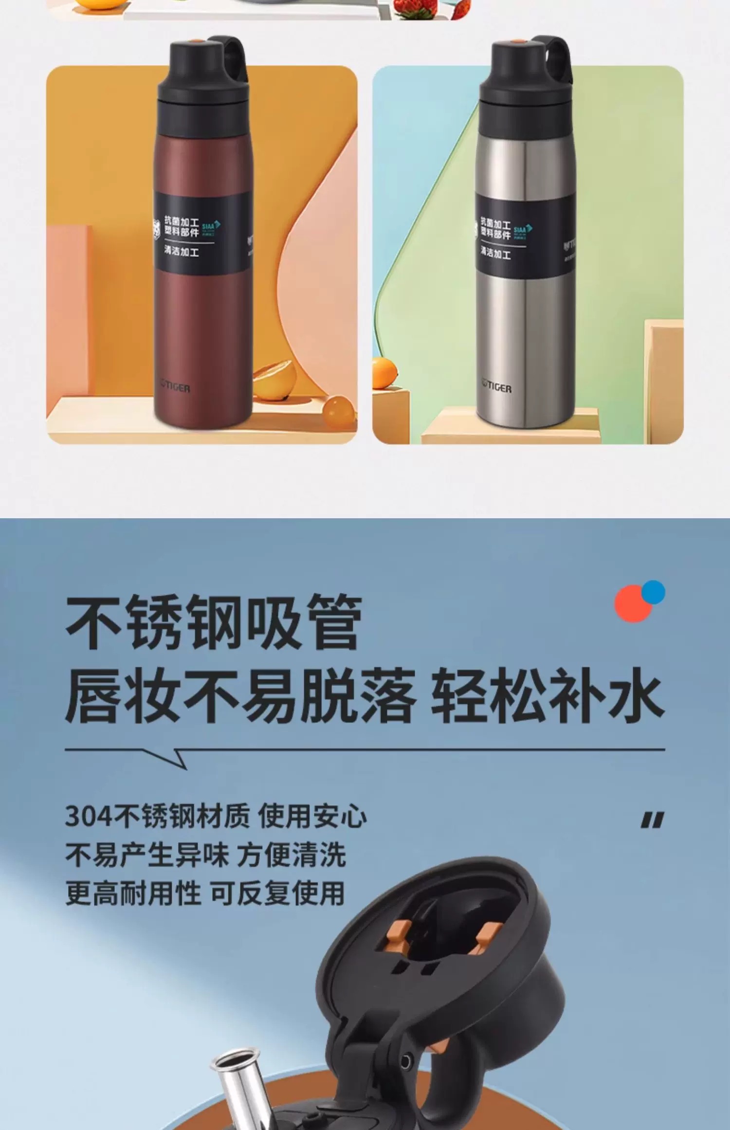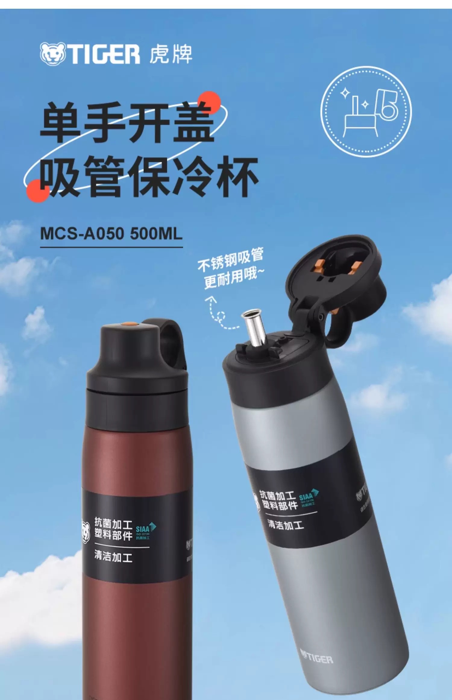 TIGER/虎牌 不锈钢吸管保冷杯MCS-A050运动户外随行杯500ml