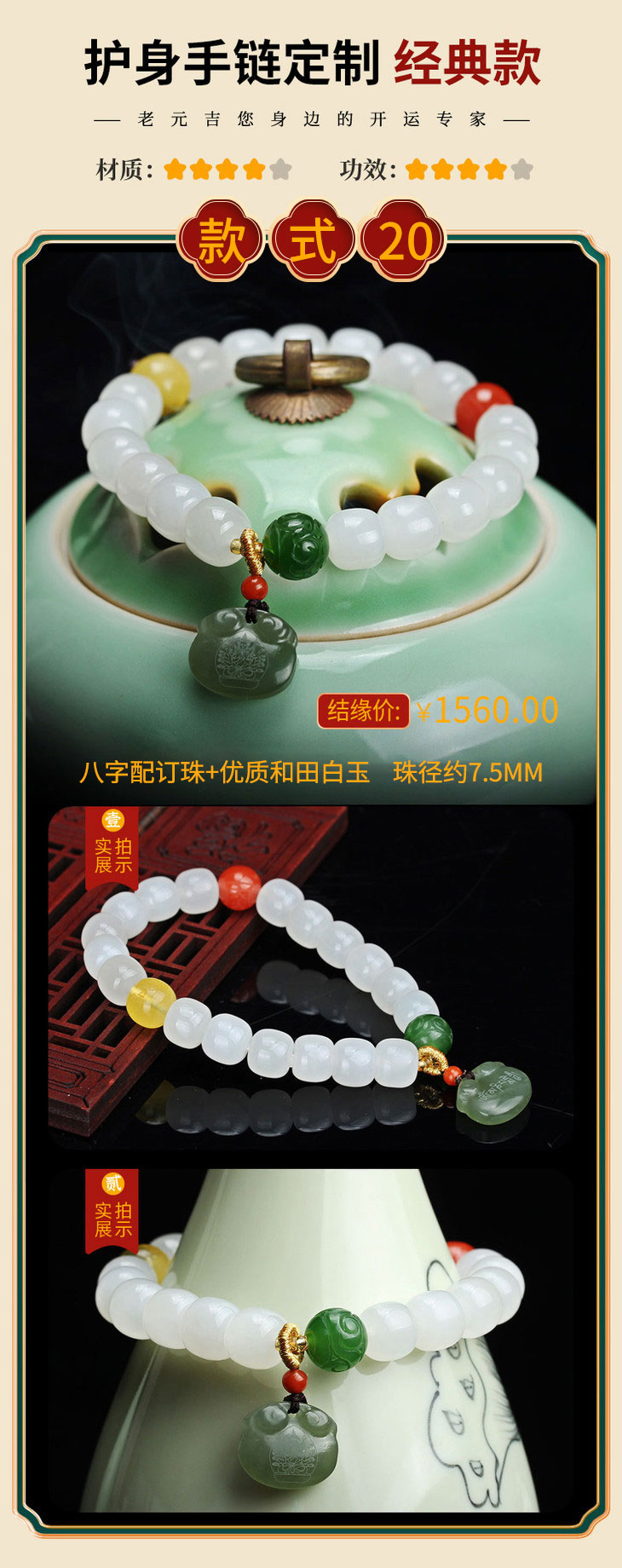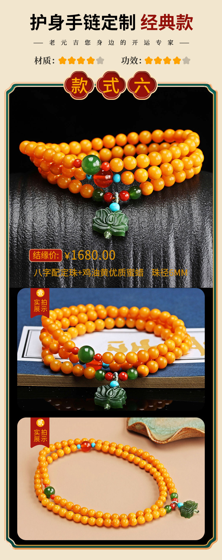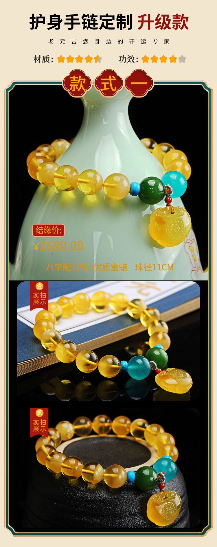 健康hu身私人定制手链【元吉星辰福康手链女款】单圈多圈手串