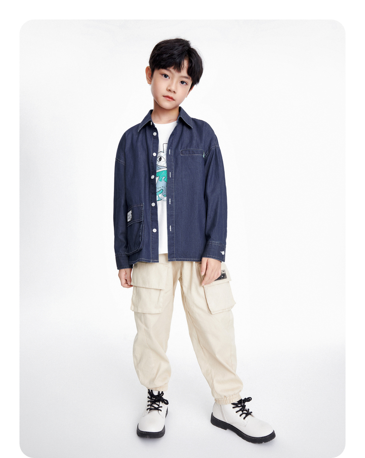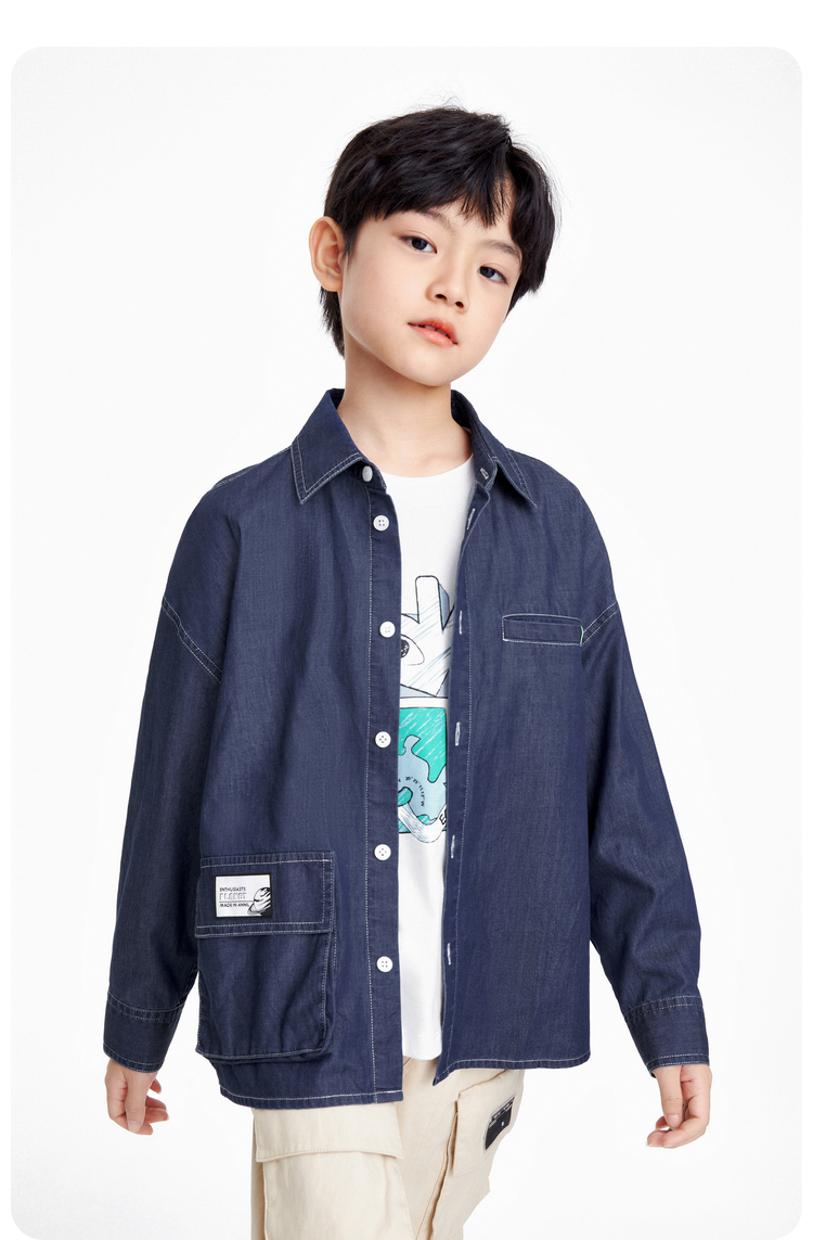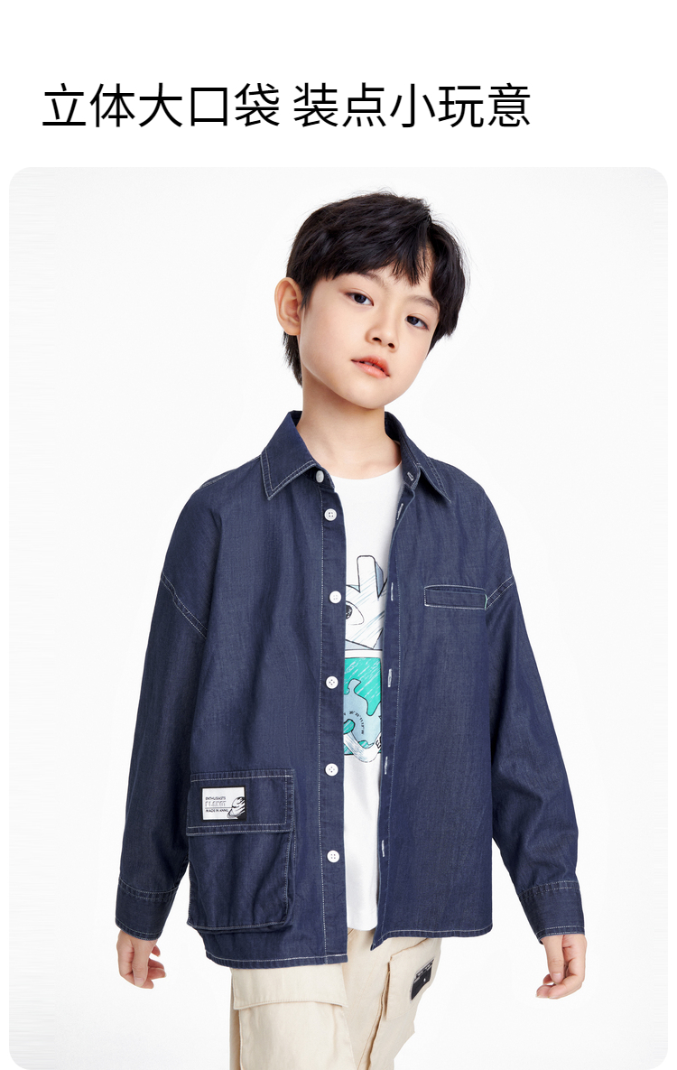 男童翻领长袖上衣春季新款安奈儿童装EB511074