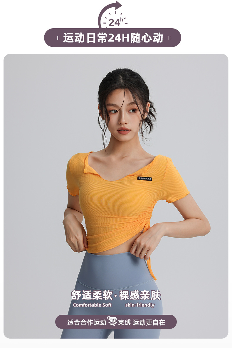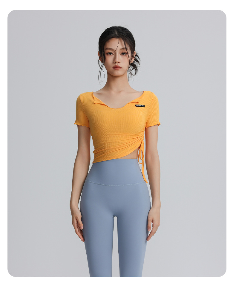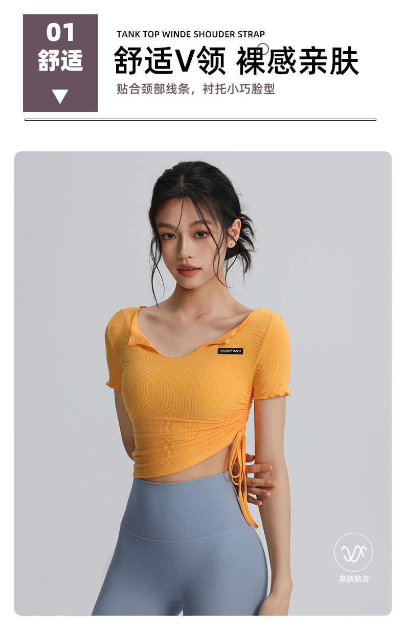 【147元任选3件】跃牌【蚂蚁运动】系列 露脐性感运动上衣弹力紧身短款绑带瑜伽服T2587(活动产品,收货7天内支持退换)