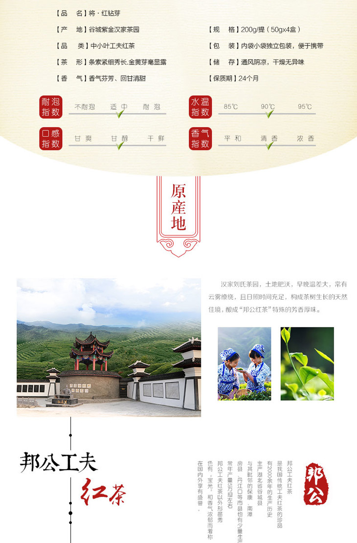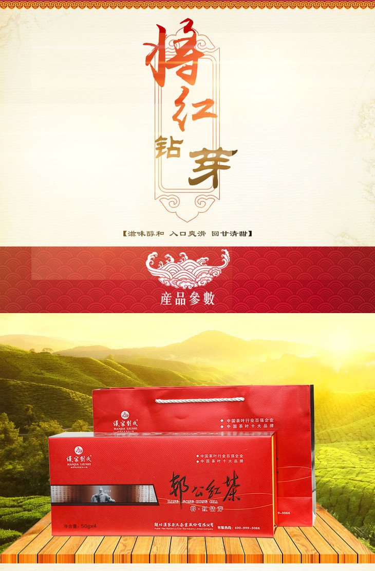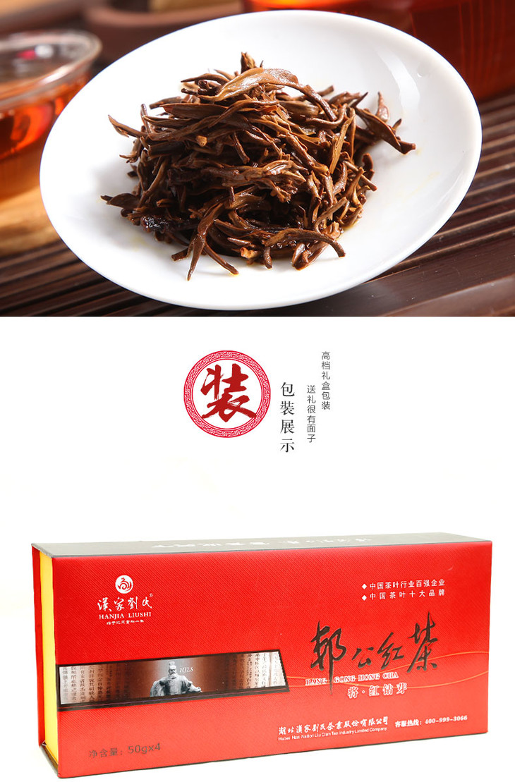 汉家刘氏 茶叶 将红钻芽 中小叶种工夫红茶 烟条型礼品礼盒装 200g 包邮