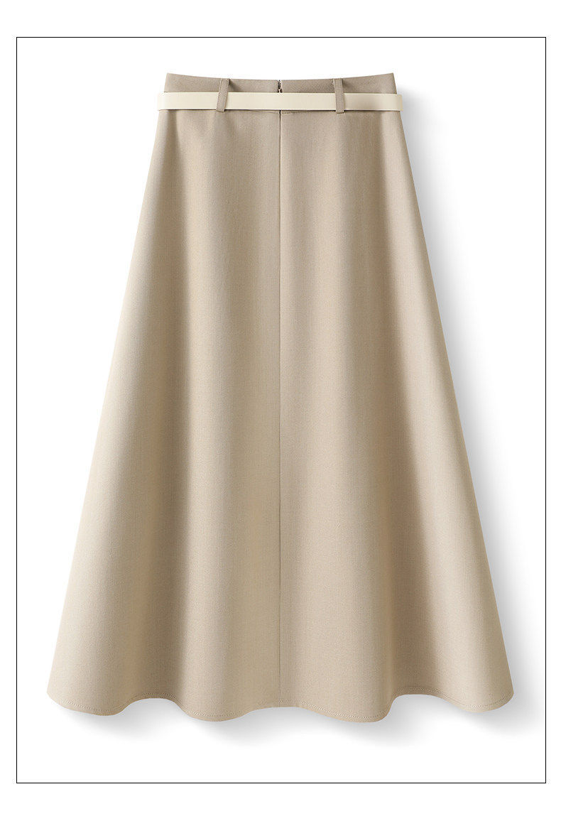 丁摩 杏色垂坠感半身裙女春秋季气质西装裙中长款a字裙子6ZF-2343
