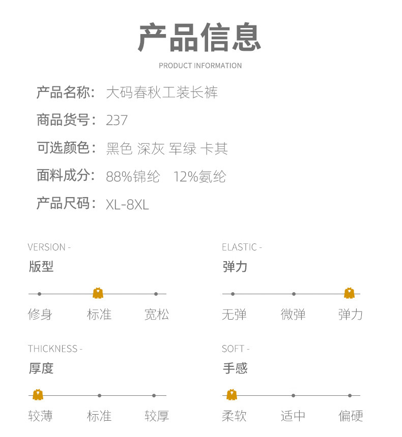 【DSF】大依优型大码男装春秋工装长裤运动休闲百搭松紧腰透气长裤新款