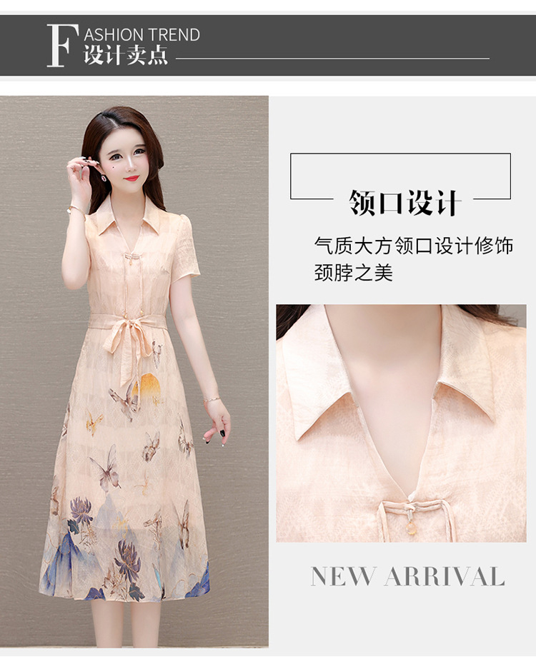 国风印花系带收腰,时尚雪纺裙连衣裙QYM-OMS-QZA475-L