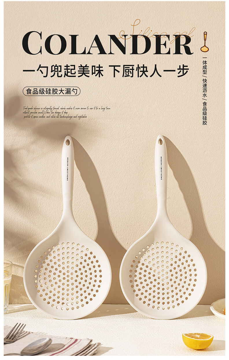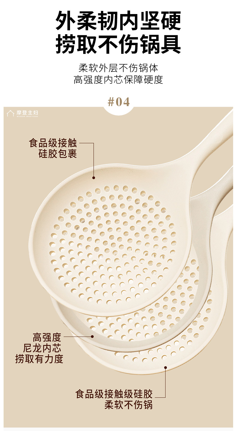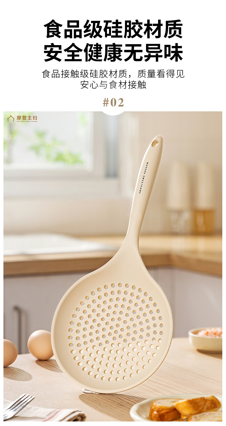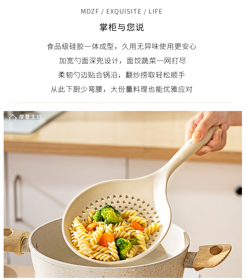 摩登主妇硅胶漏勺食品级耐高温捞勺厨房家用长柄捞面饺子沥水大滤勺