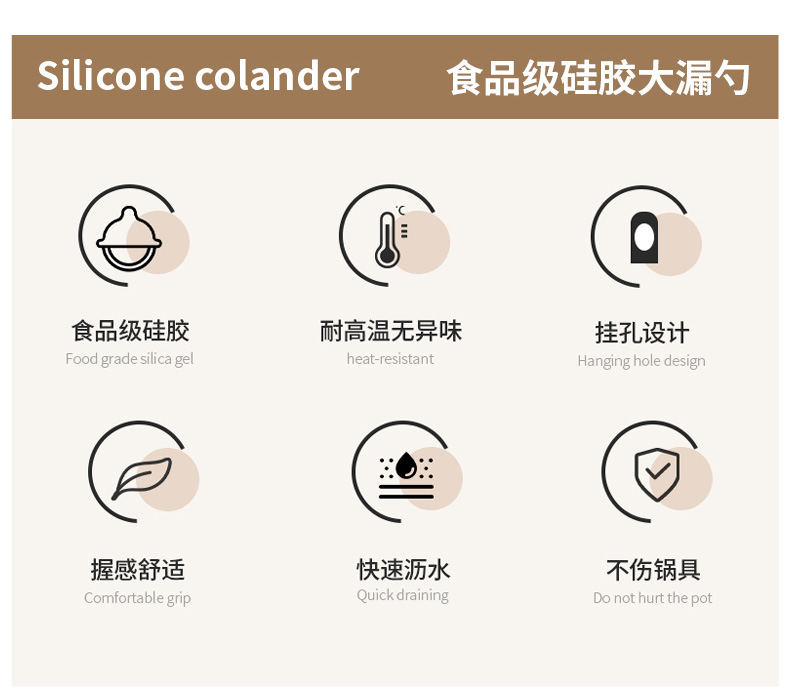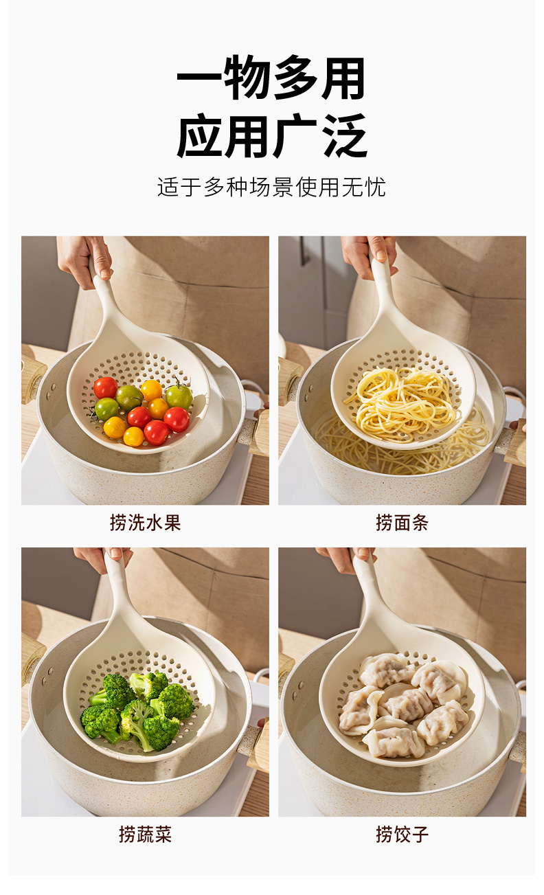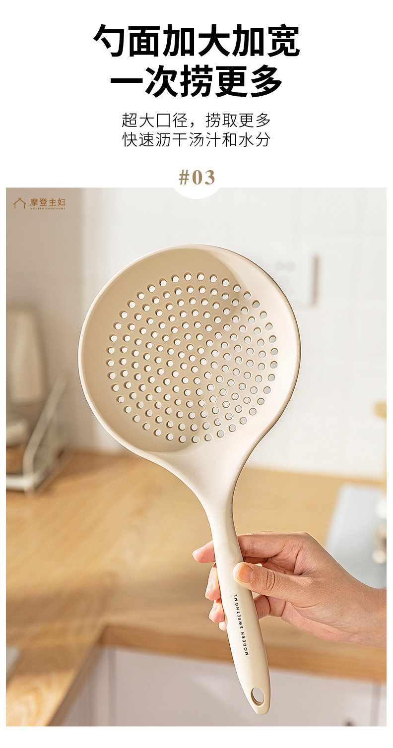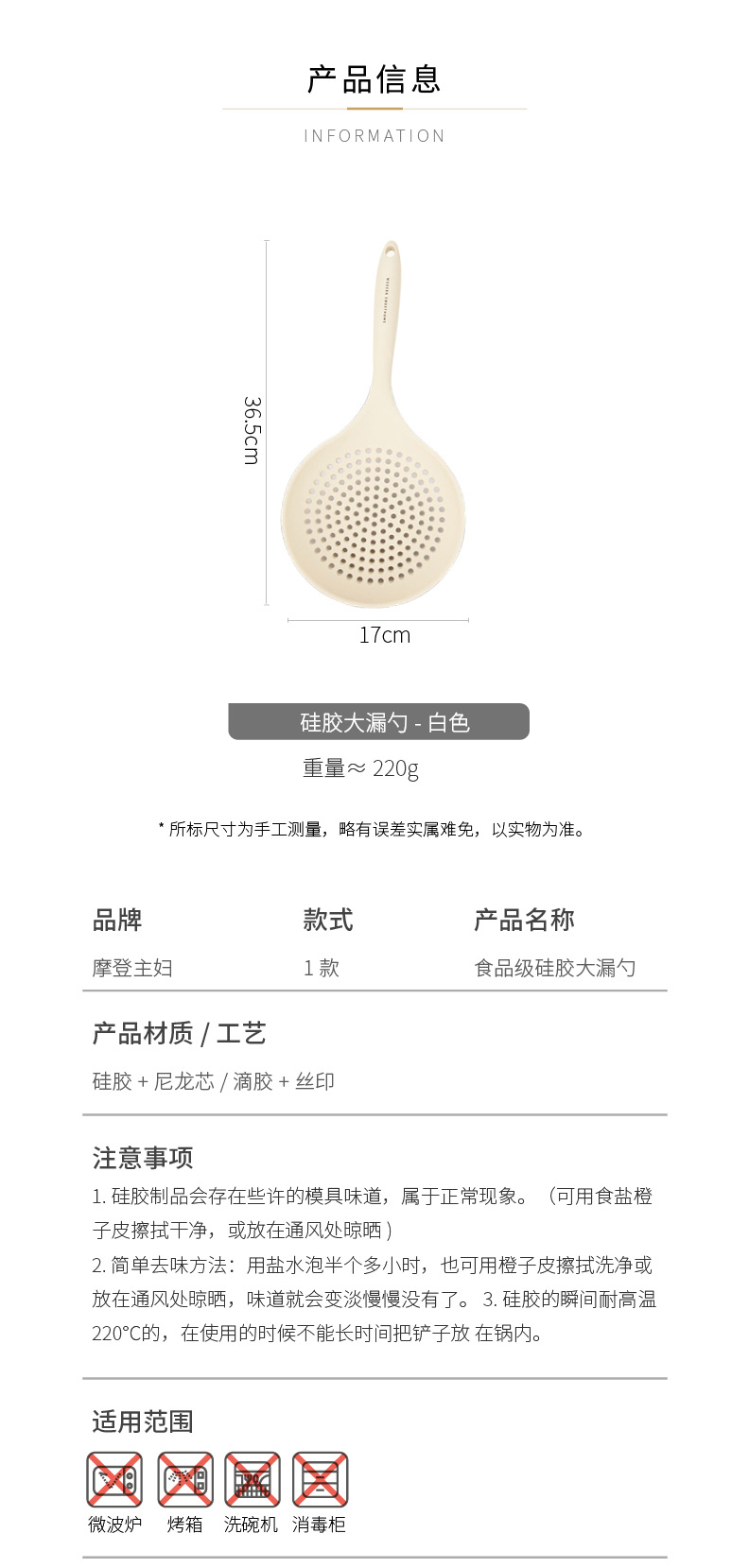 摩登主妇硅胶漏勺食品级耐高温捞勺厨房家用长柄捞面饺子沥水大滤勺