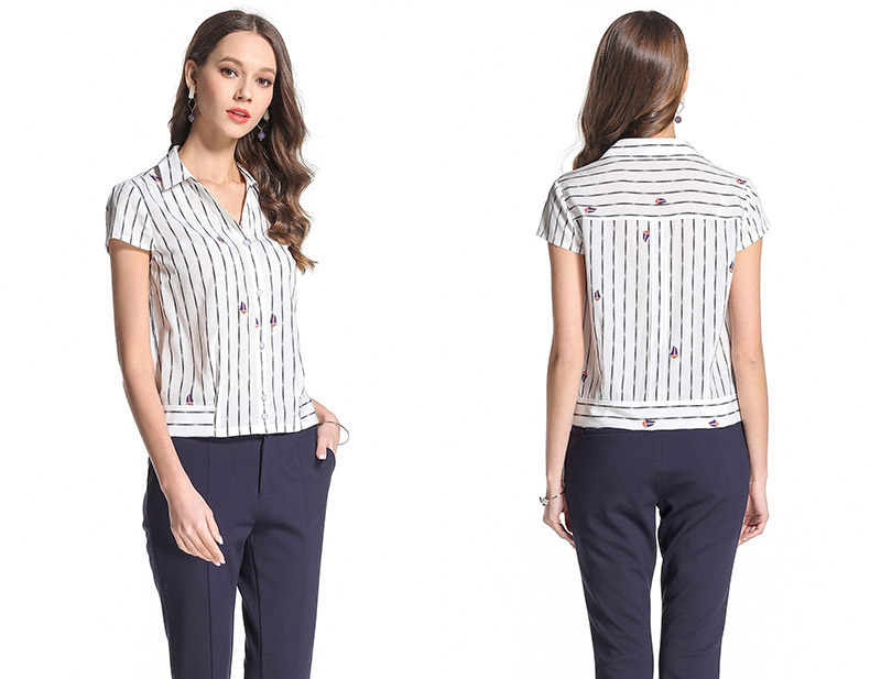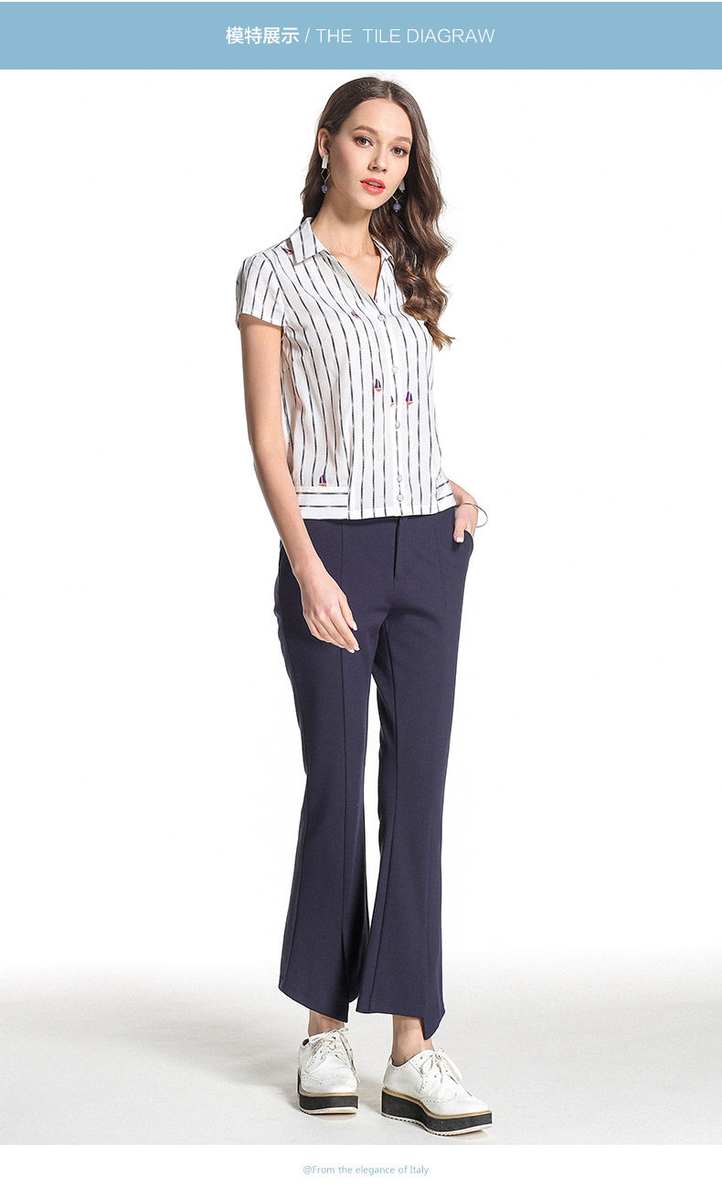 乔万尼衬衫OL风竖条纹真丝上衣EB2C845