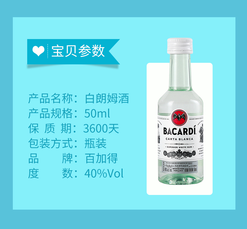 波多黎各百加得白朗姆酒50ML(酒版)小酒