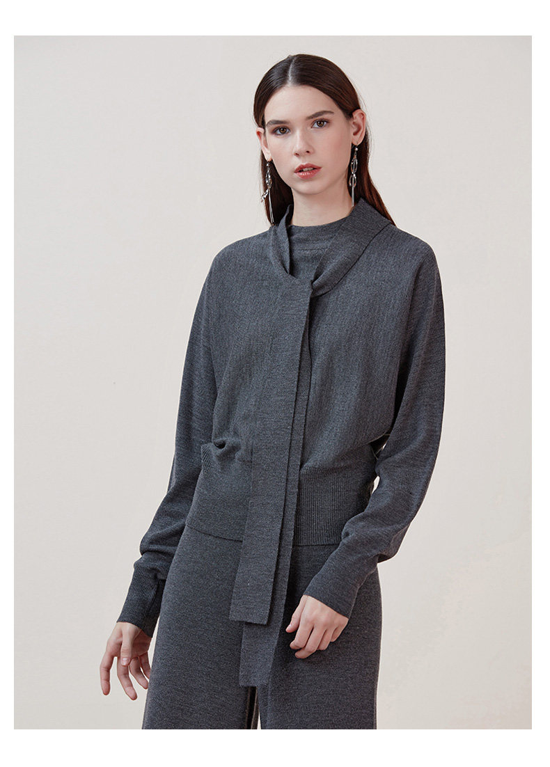 EITIE爱特爱品牌女装冬季时尚休闲领口领结羊毛针织衫女5801513