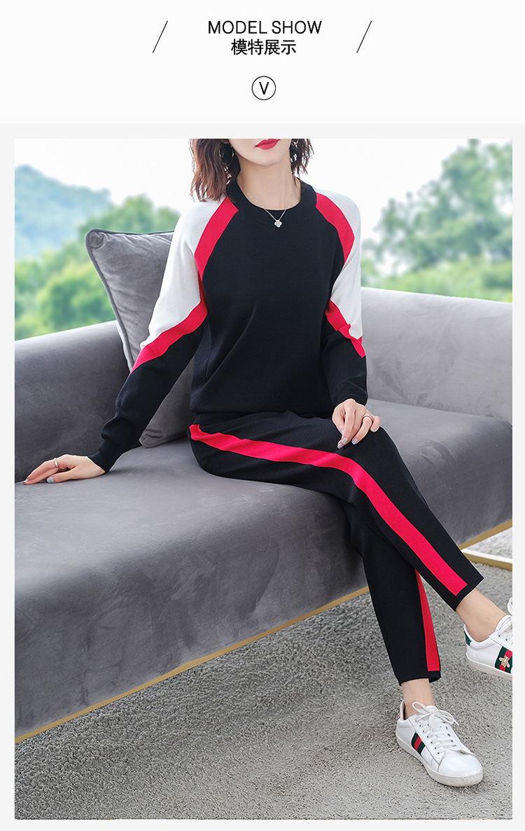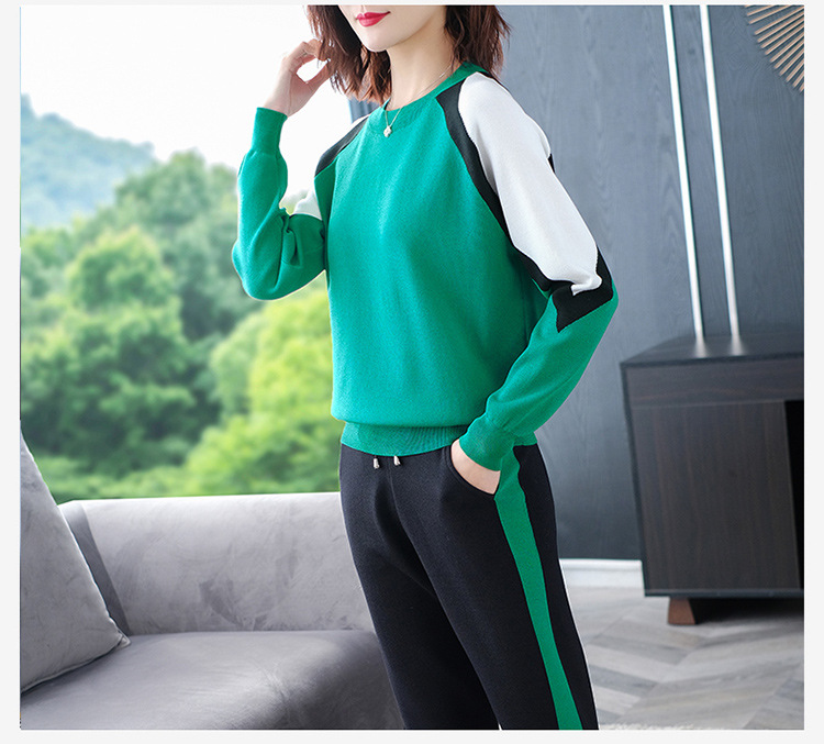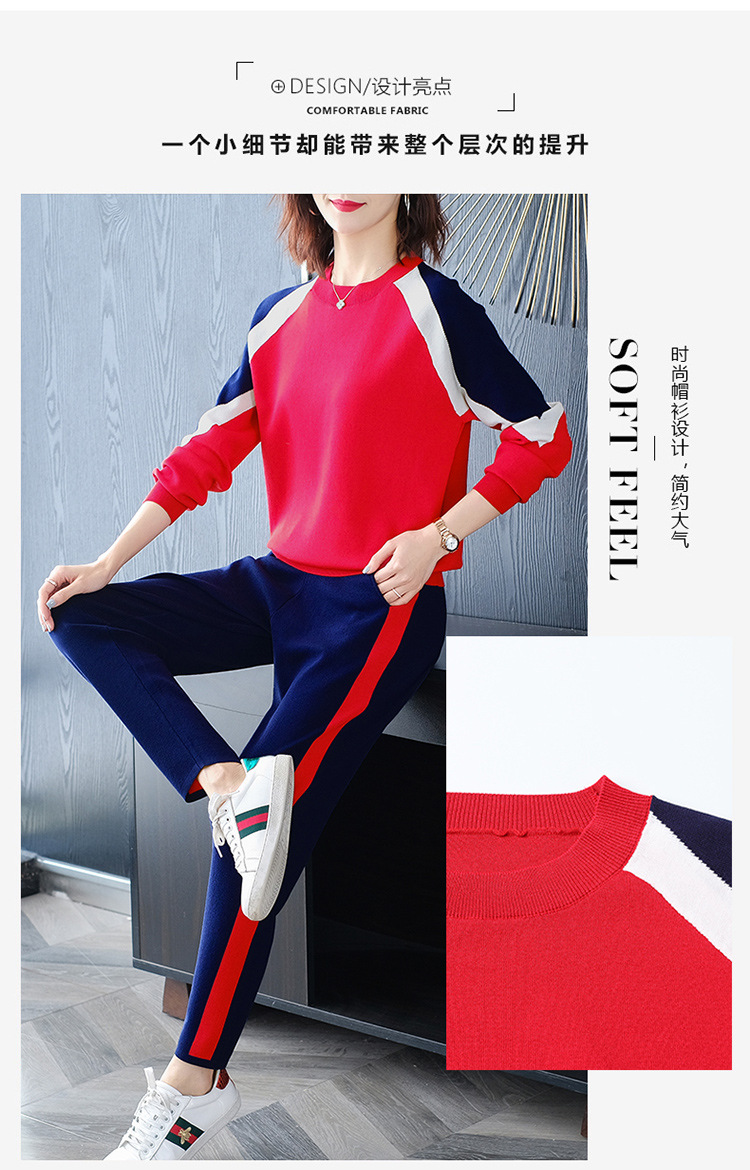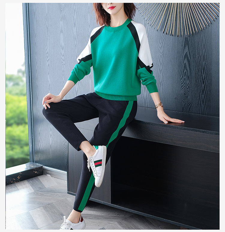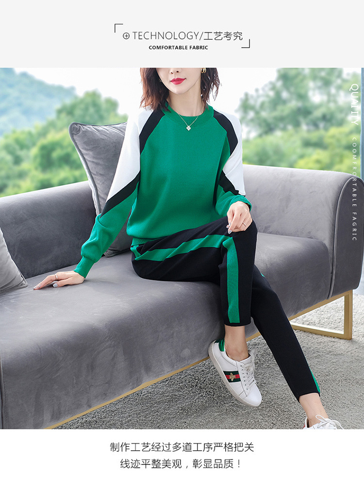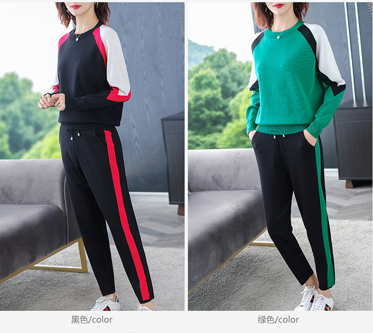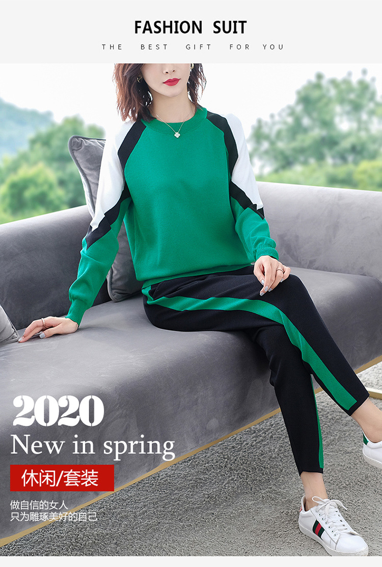 GH-wx162春季新款时尚拼色冰麻针织小脚裤套装