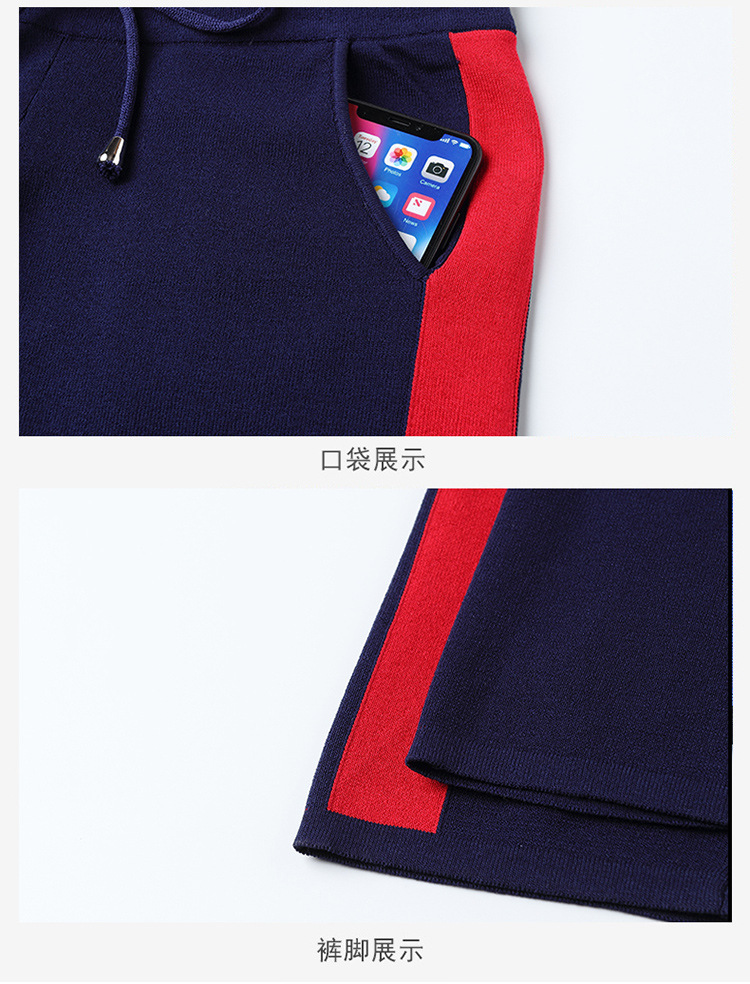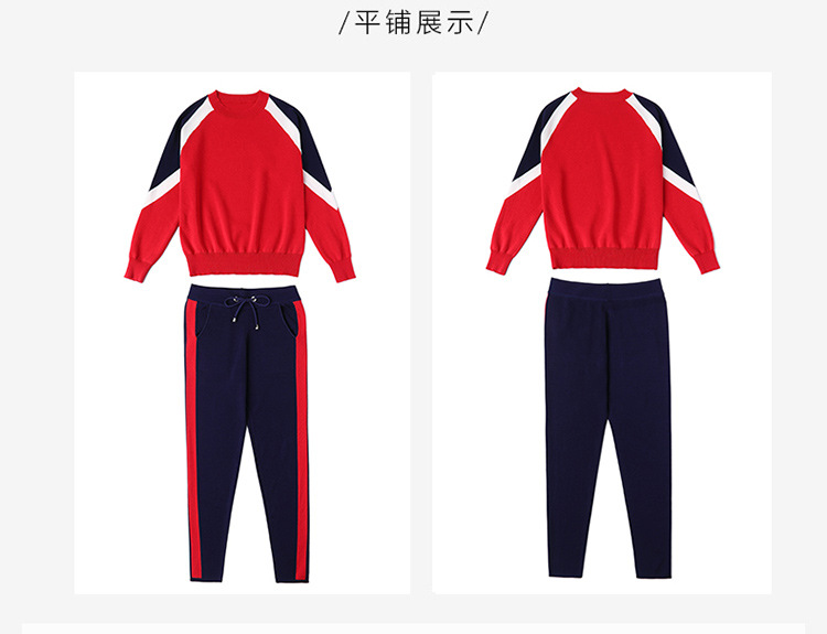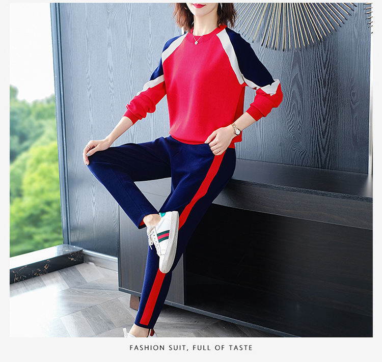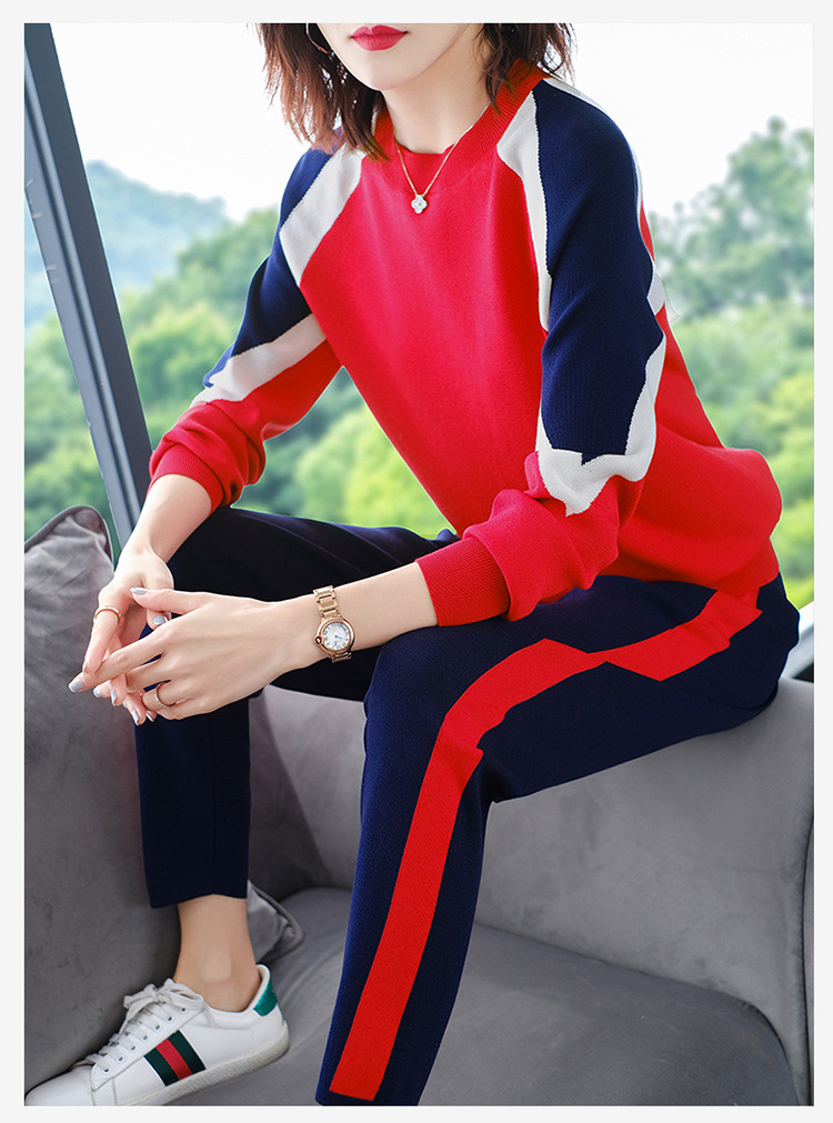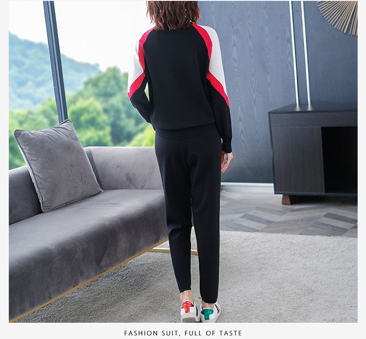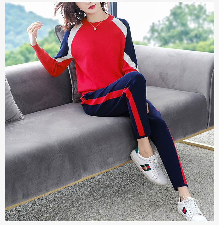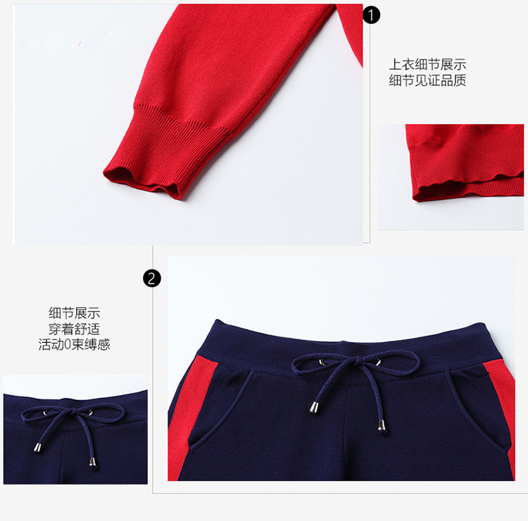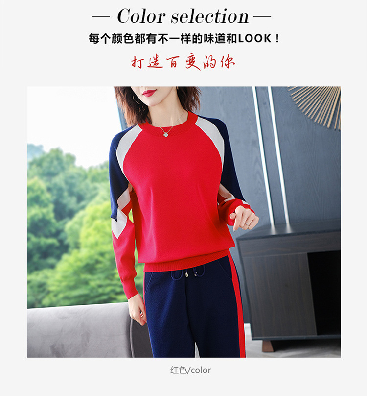GH-wx162春季新款时尚拼色冰麻针织小脚裤套装