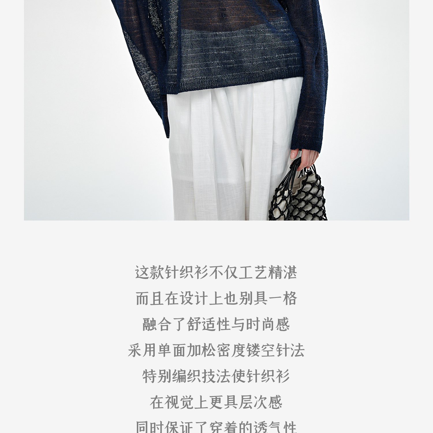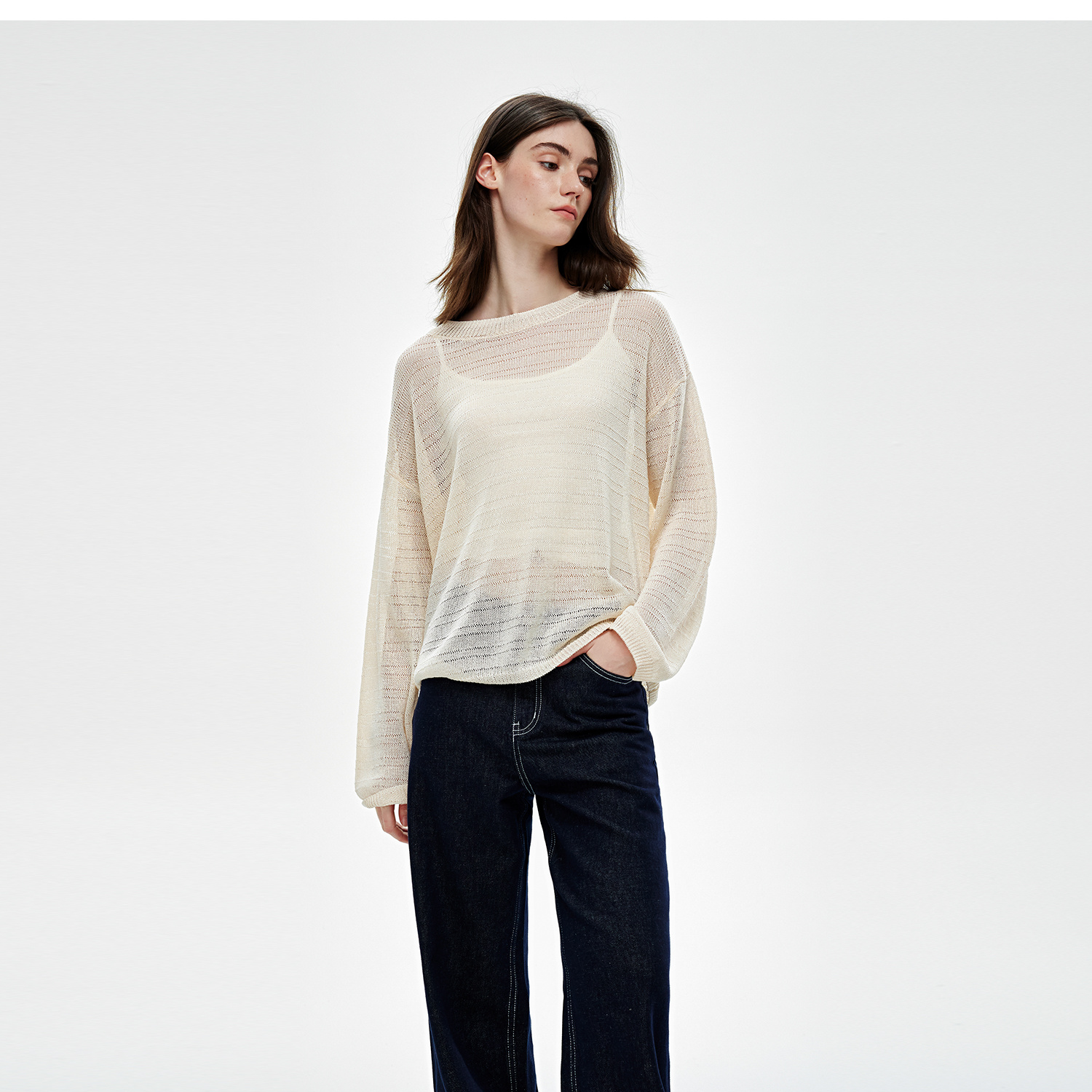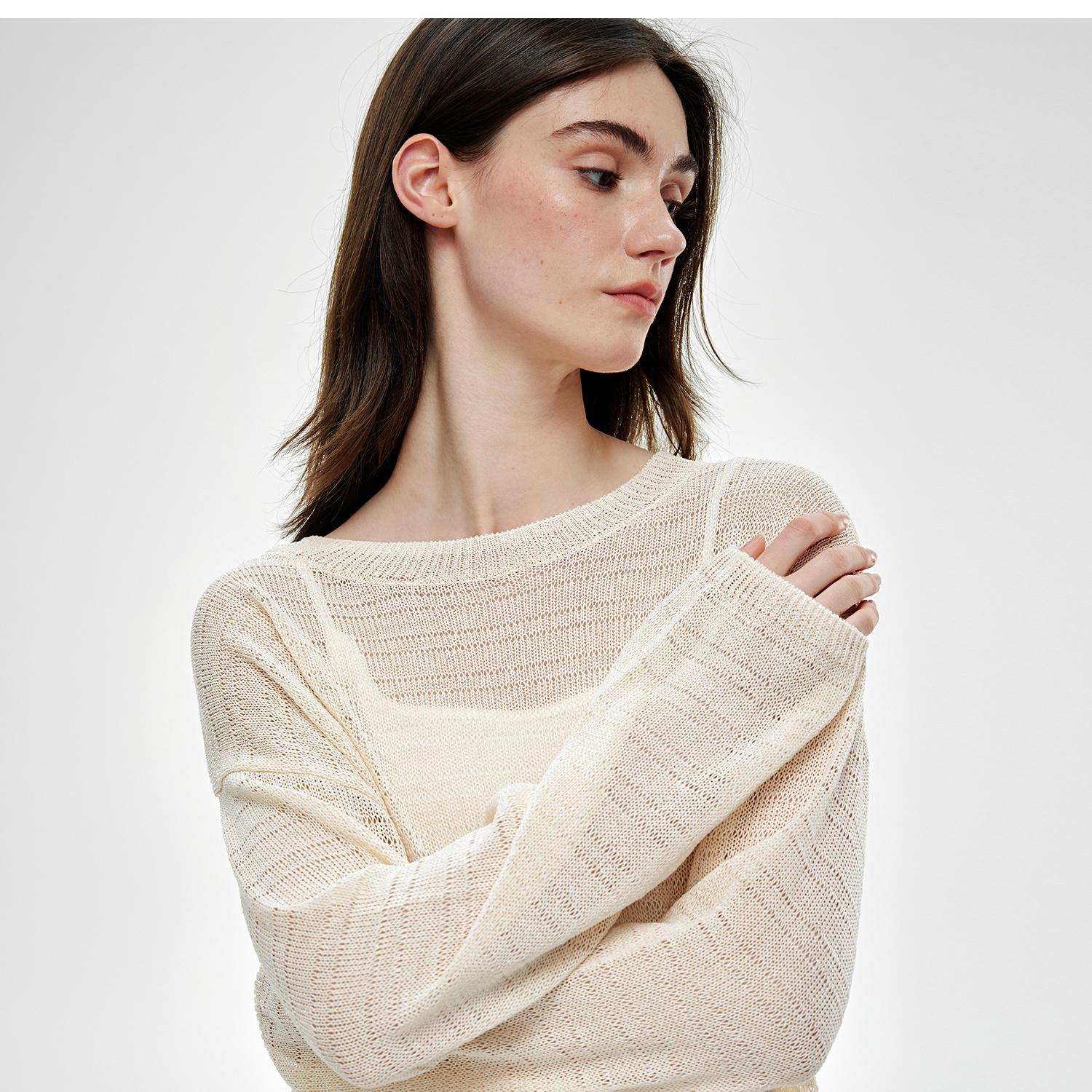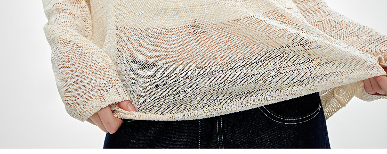 C+IMPRESS/西嘉桑蚕丝和纸纱宽松休闲镂空针织防晒罩衫女长袖上衣T2502046