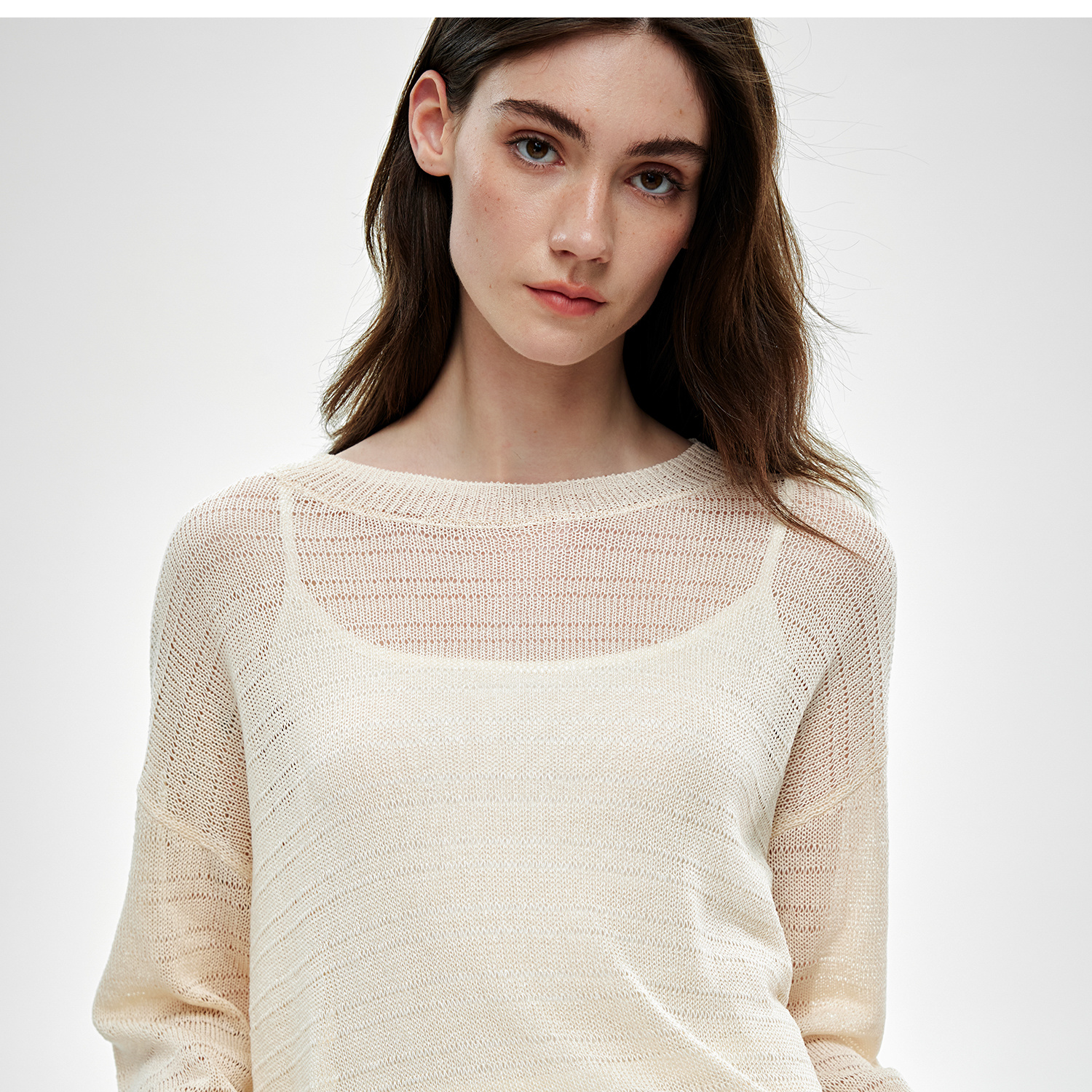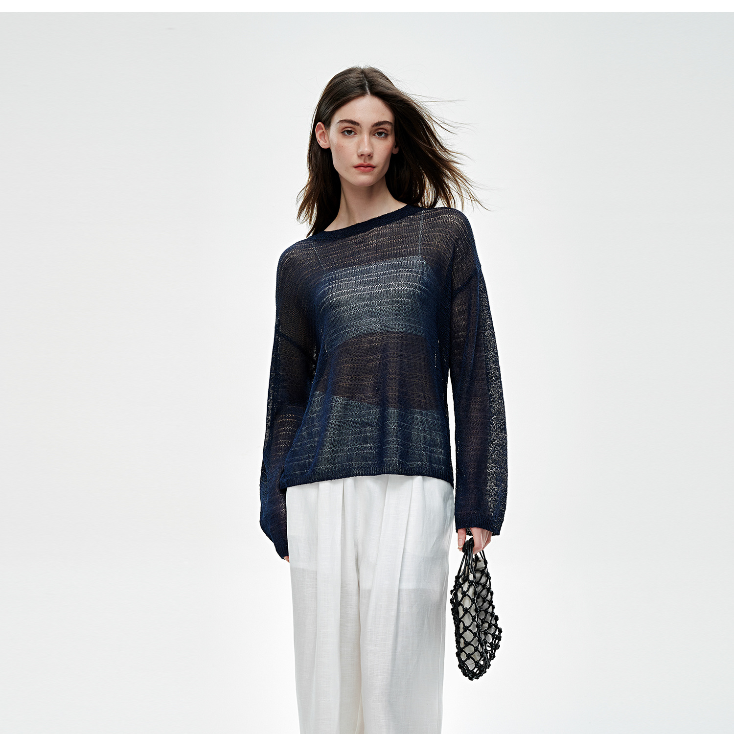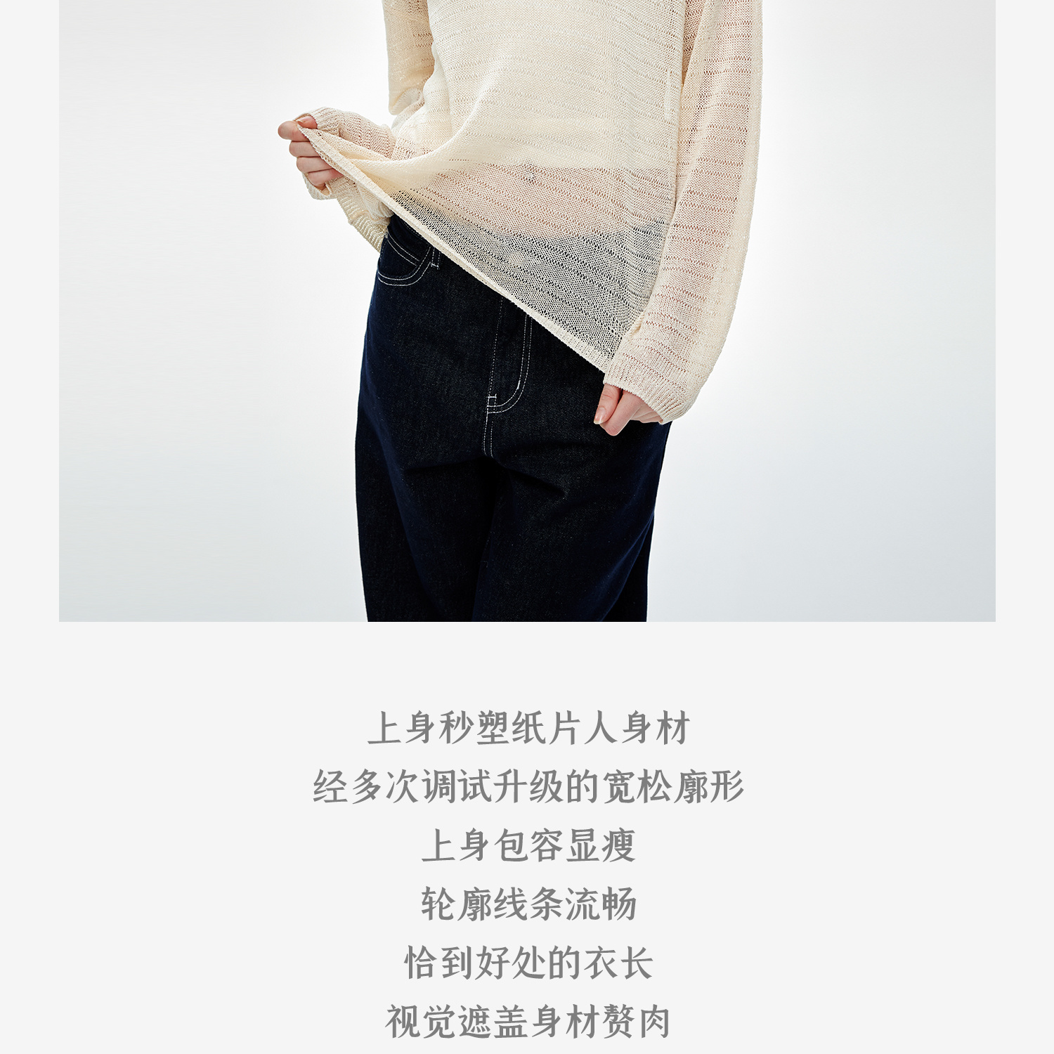 C+IMPRESS/西嘉桑蚕丝和纸纱宽松休闲镂空针织防晒罩衫女长袖上衣T2502046
