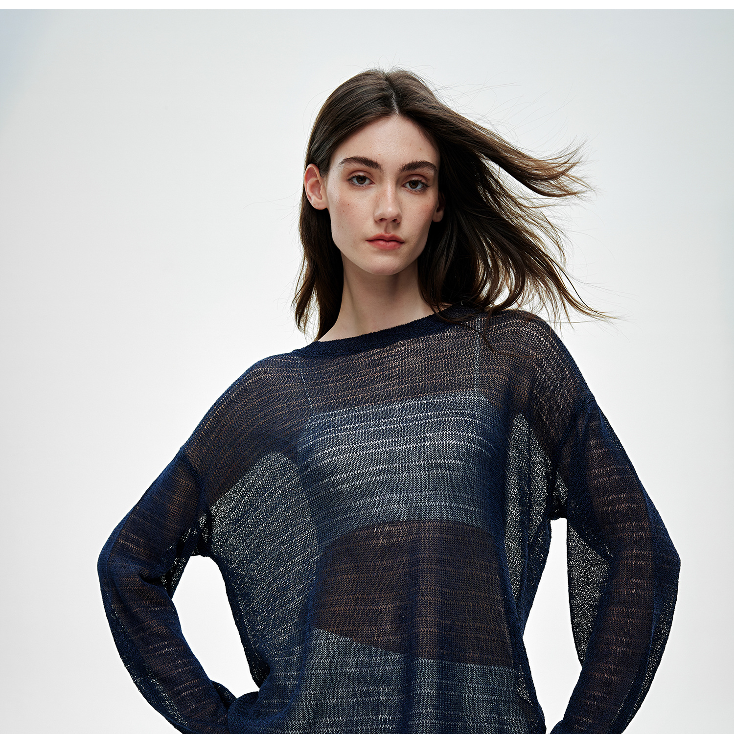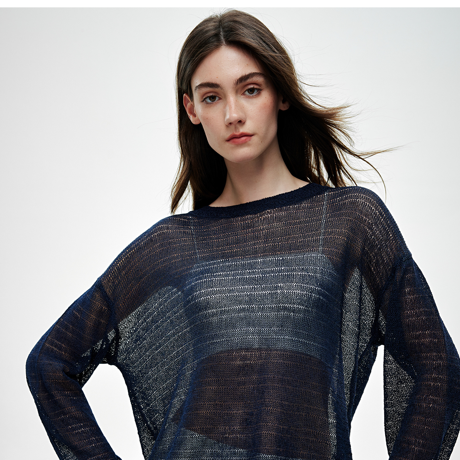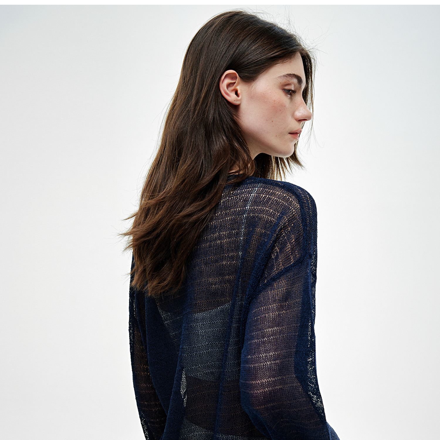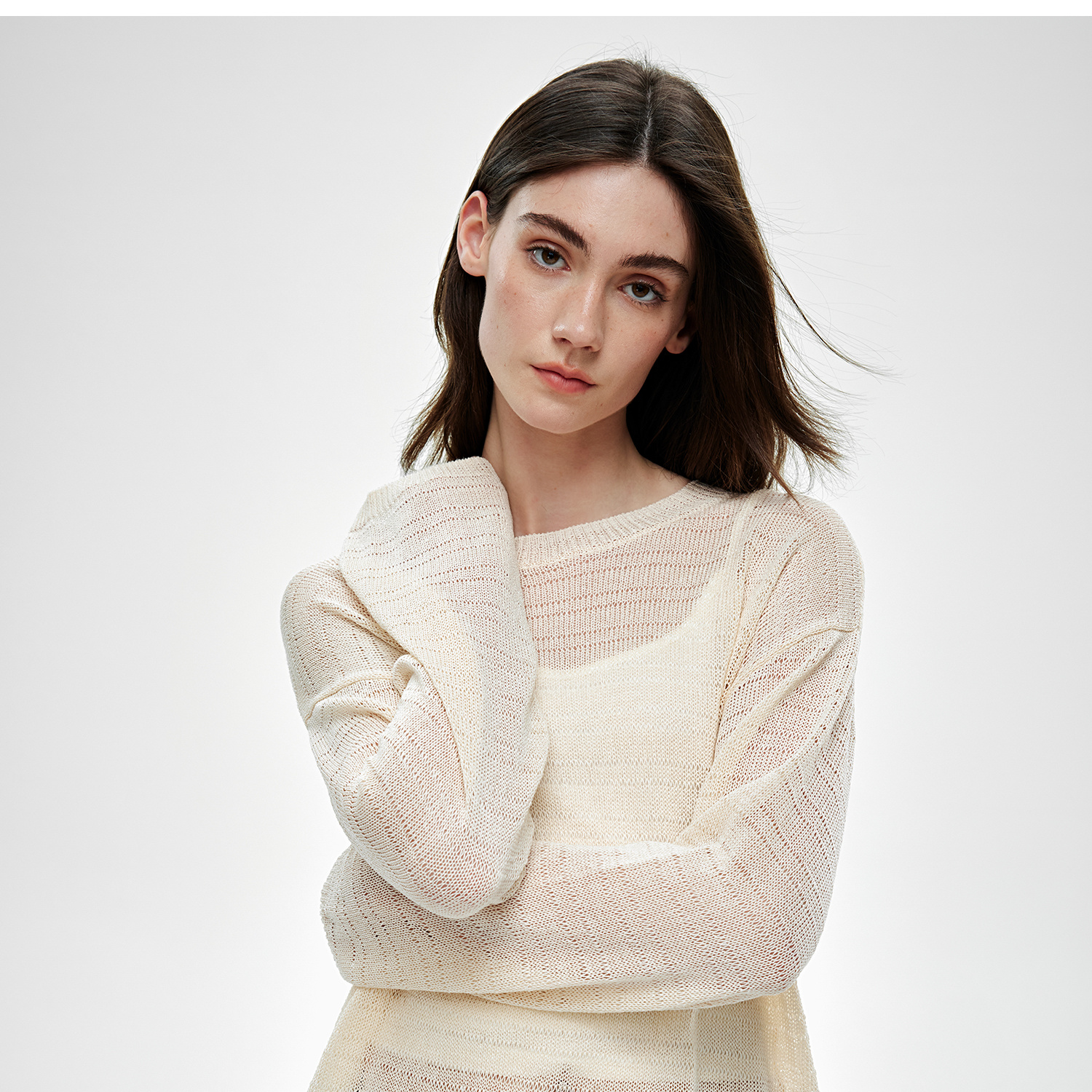 C+IMPRESS/西嘉桑蚕丝和纸纱宽松休闲镂空针织防晒罩衫女长袖上衣T2502046