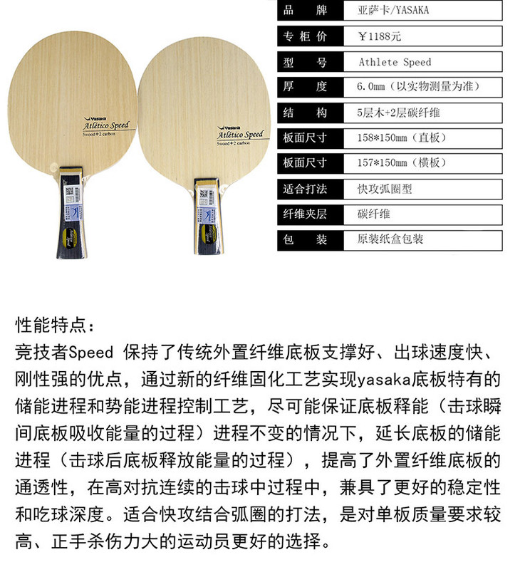 商品名称:亚萨卡Yasaka 竞技者系列 Atletico speed 5+2结构 外置纤维 正手大杀器!