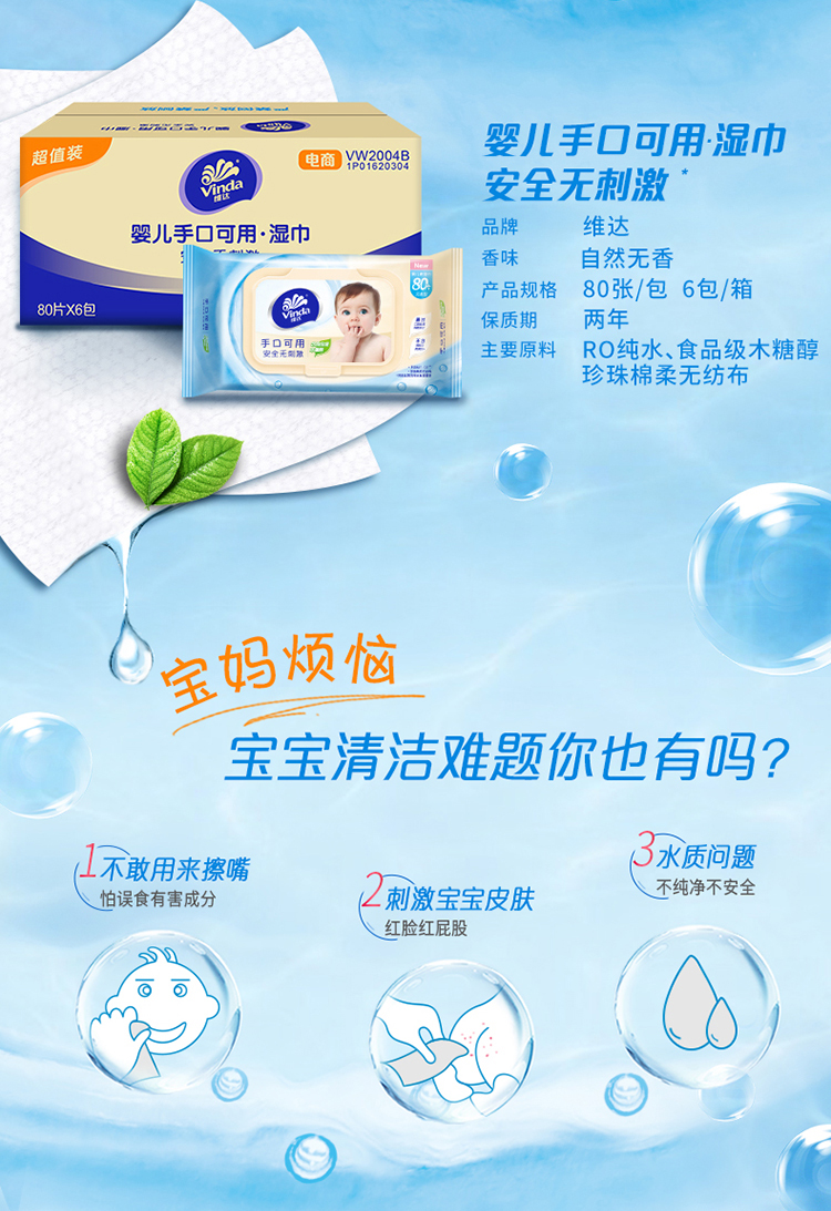 【官方包邮】维达婴儿手口湿巾无刺激80片6包/箱