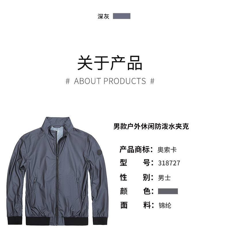 OZARK奥索卡春夏新款男款户外休闲防水夹克 318727
