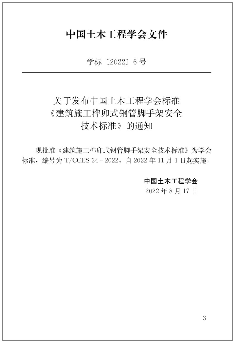 书名:建筑施工榫卯式钢管脚手架安全技术标准T/CCES 34-2022
