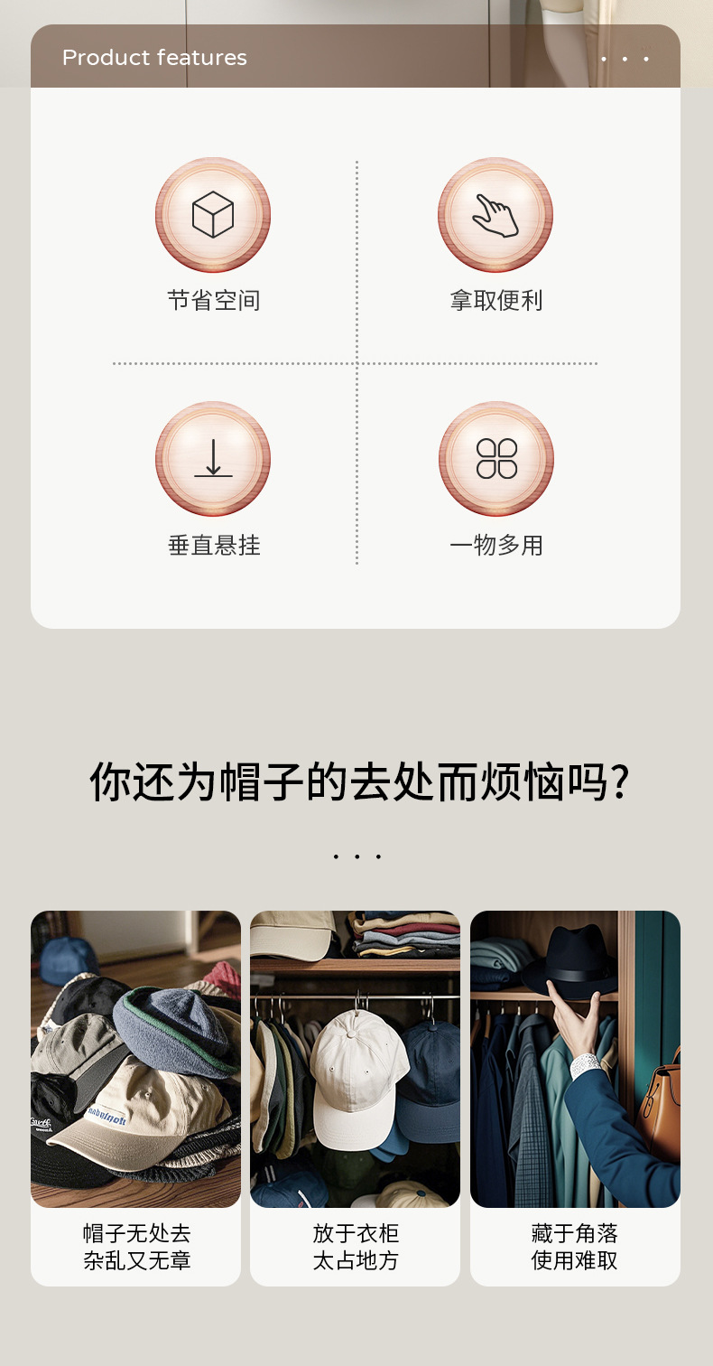 【垂直收纳❗️立省空间】FaSoLa衣帽钩玄关墙上挂放鸭舌帽置物挂架门后免打孔帽子收纳挂钩。ya