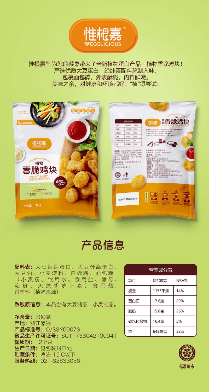 【买3送1】植物香脆鸡块|300g/袋 优质大豆蛋白制品 富含膳食纤维 净素不含五辛 惟根嘉