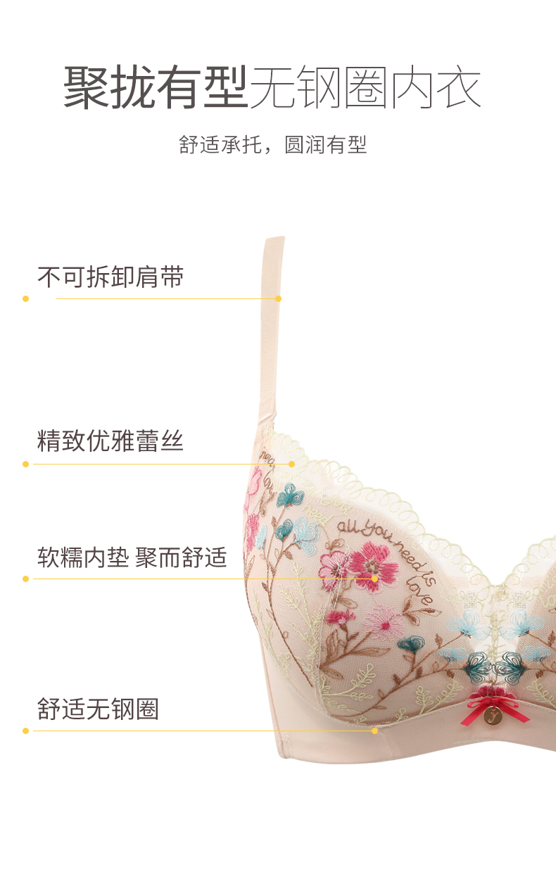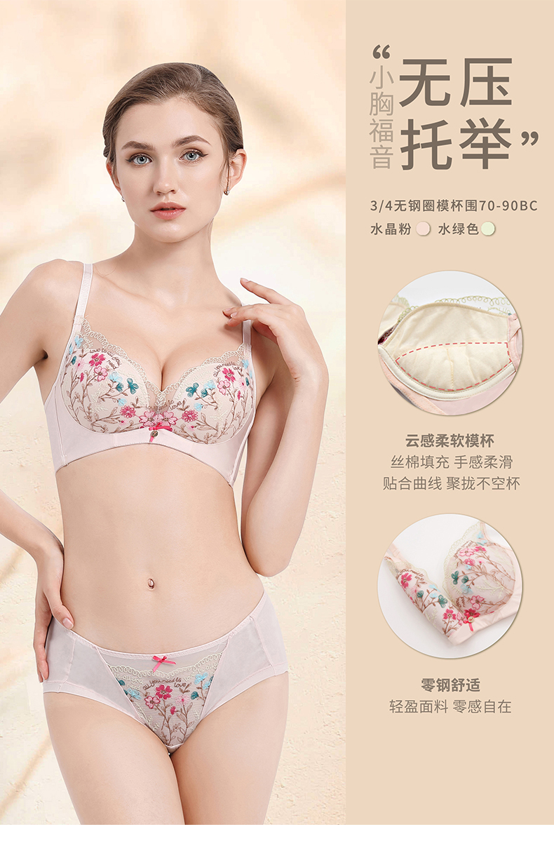 贝佳人文胸胸罩小胸聚拢舒适上托内衣无钢圈3d软支撑BW952051