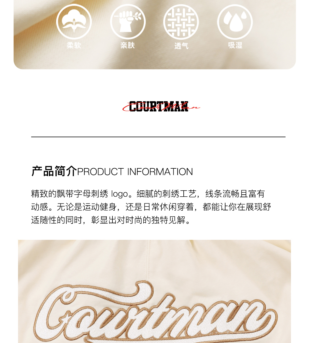 COURTMAN野球帝 运动透气篮球短裤男美式刺绣印花休闲跑步训练裤