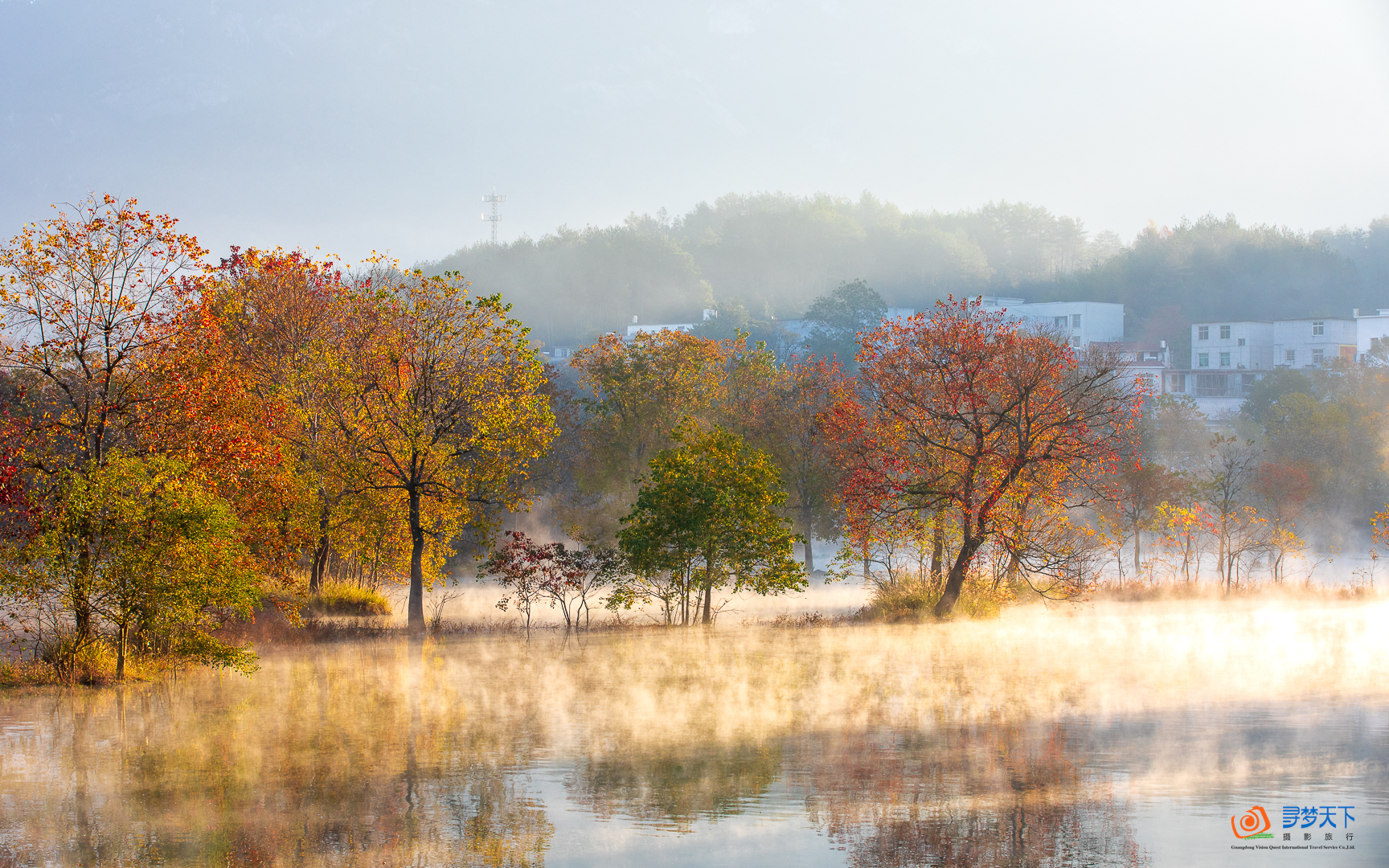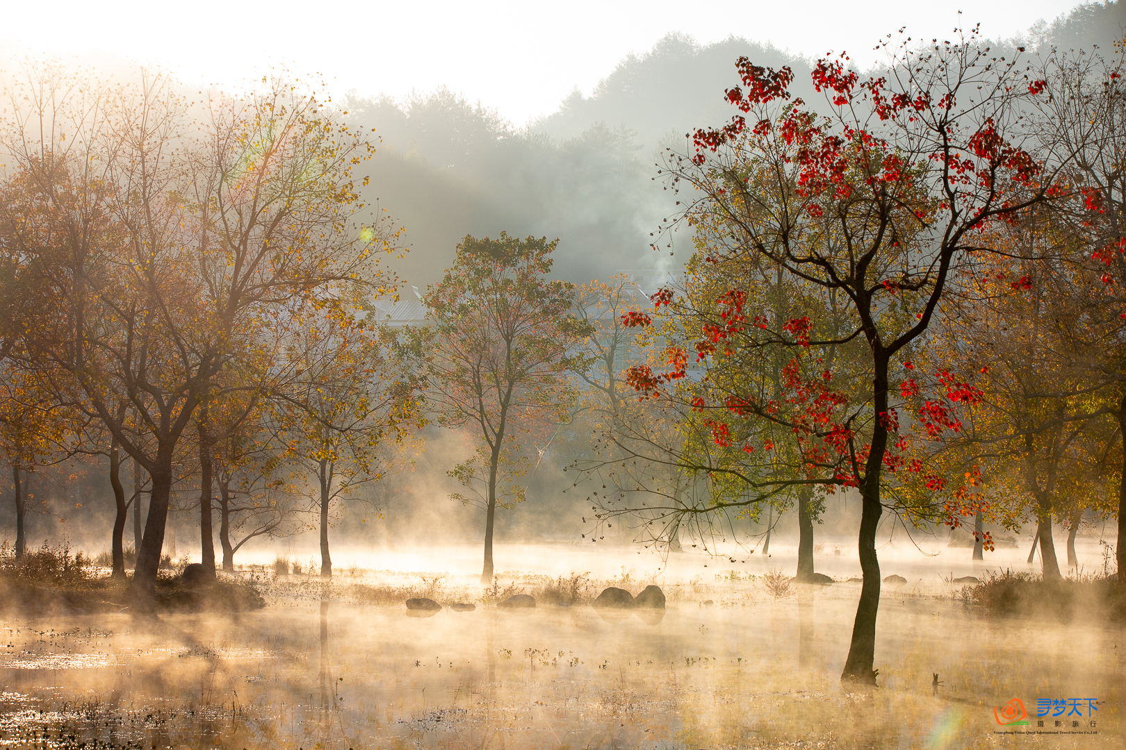 拍摄重点:九资河晨雾中的田园诗意,乌桕树在不同光线下的色彩层次