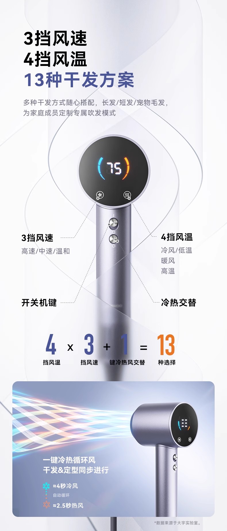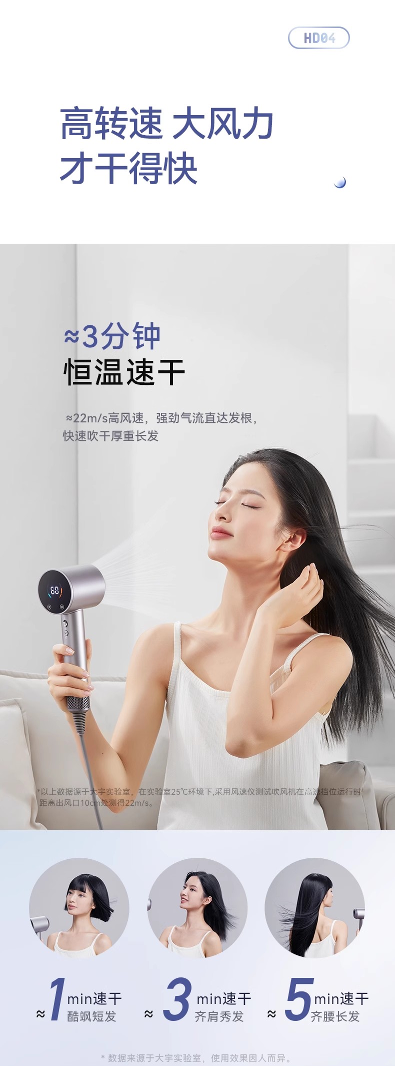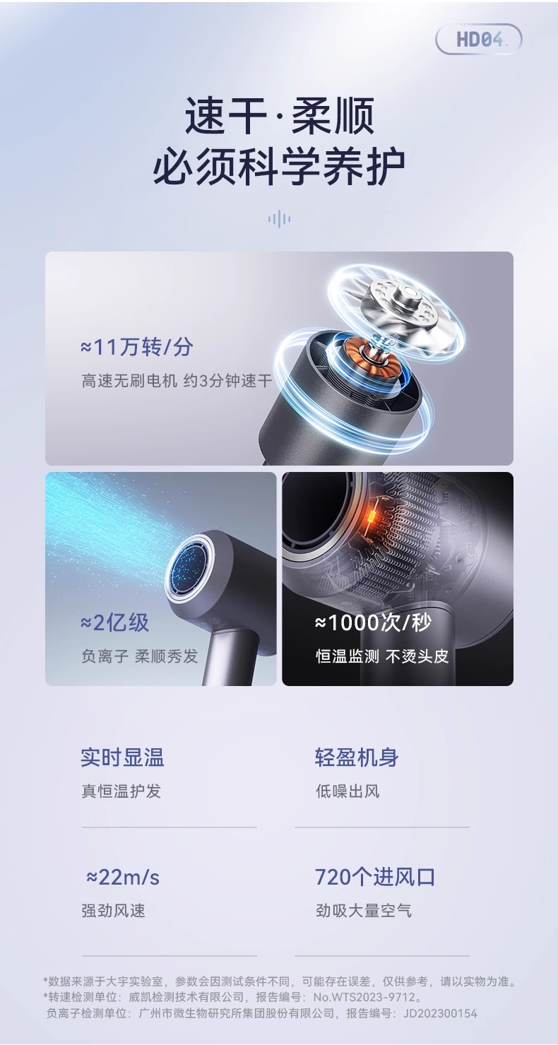 韩国大宇温感吹风机家用2亿负离子护发大风力高速电吹风