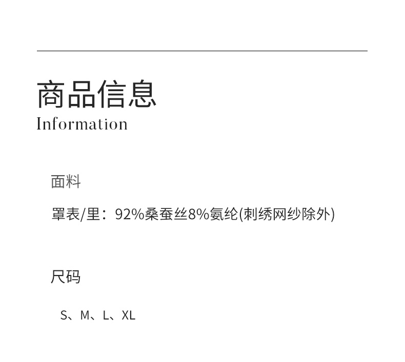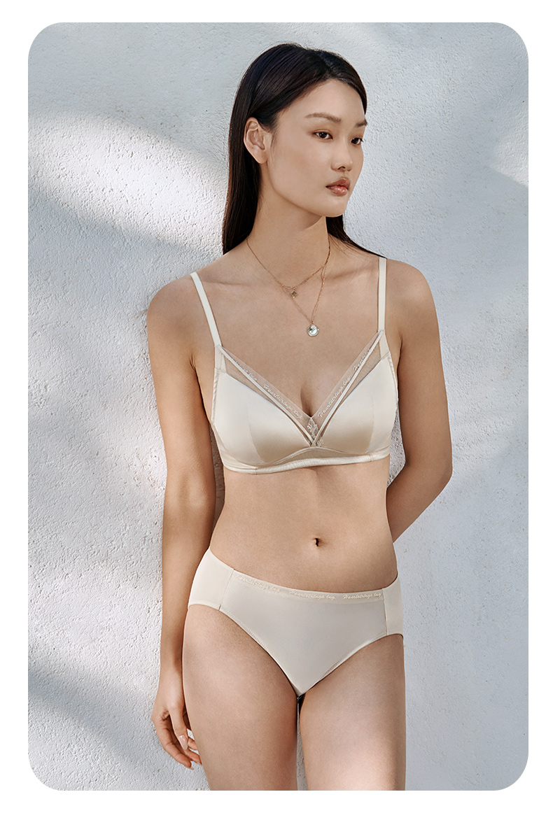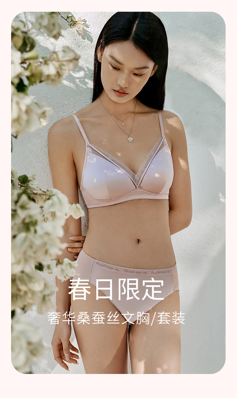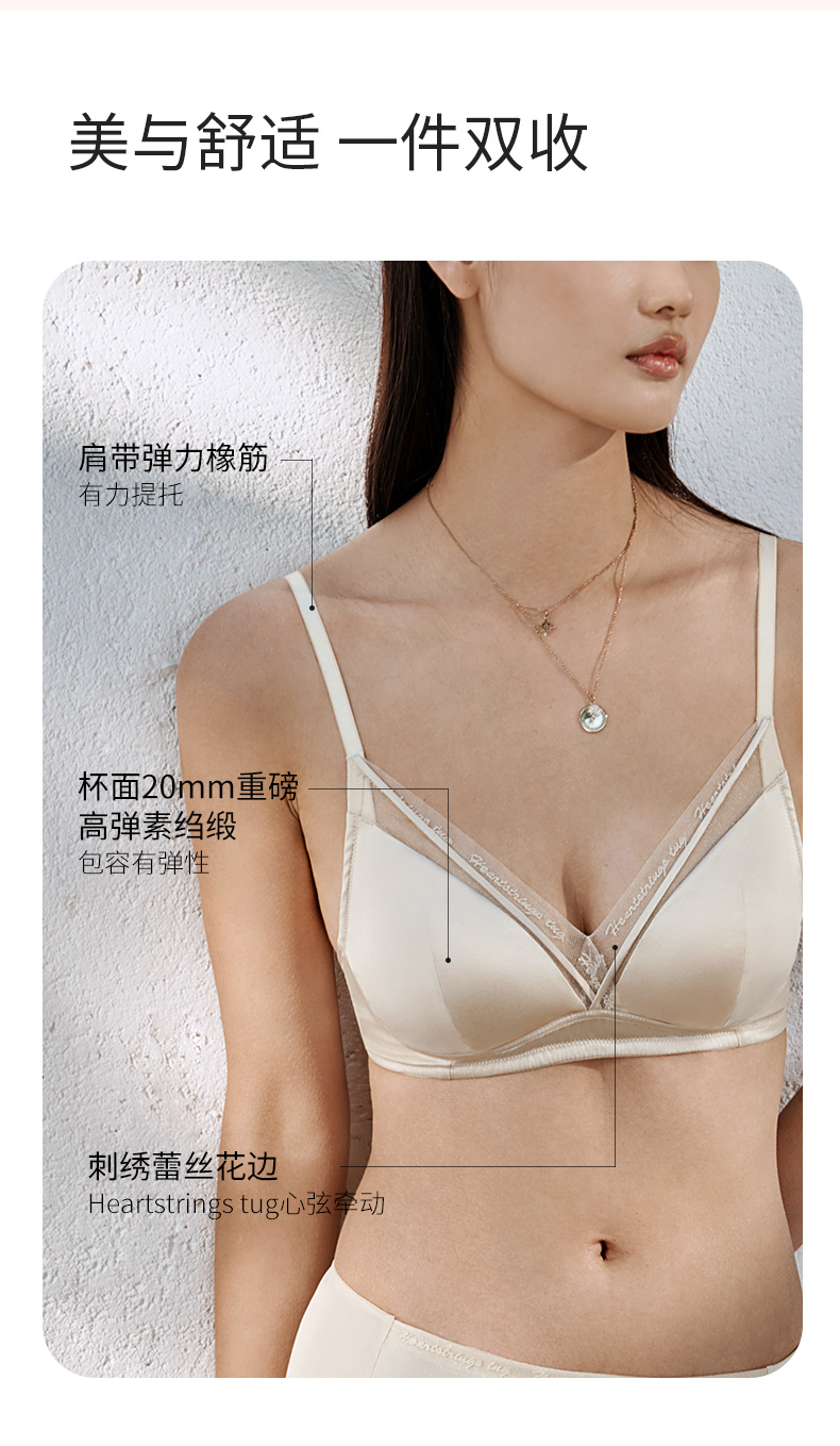 金三塔女92%桑蚕丝弹力缎面拼接文胸