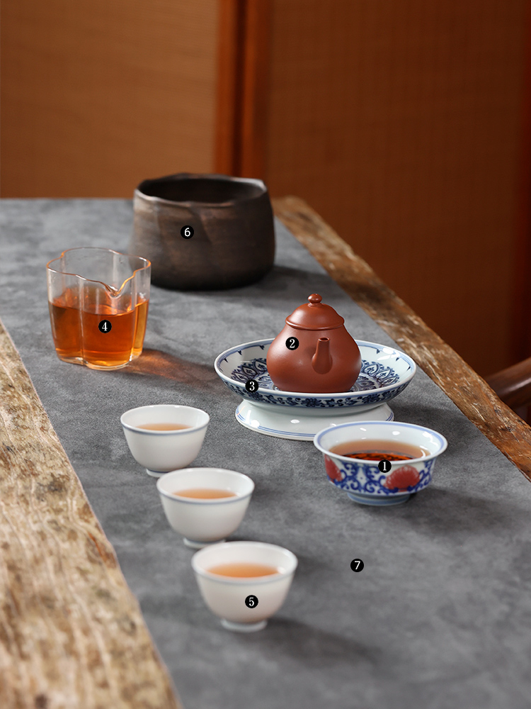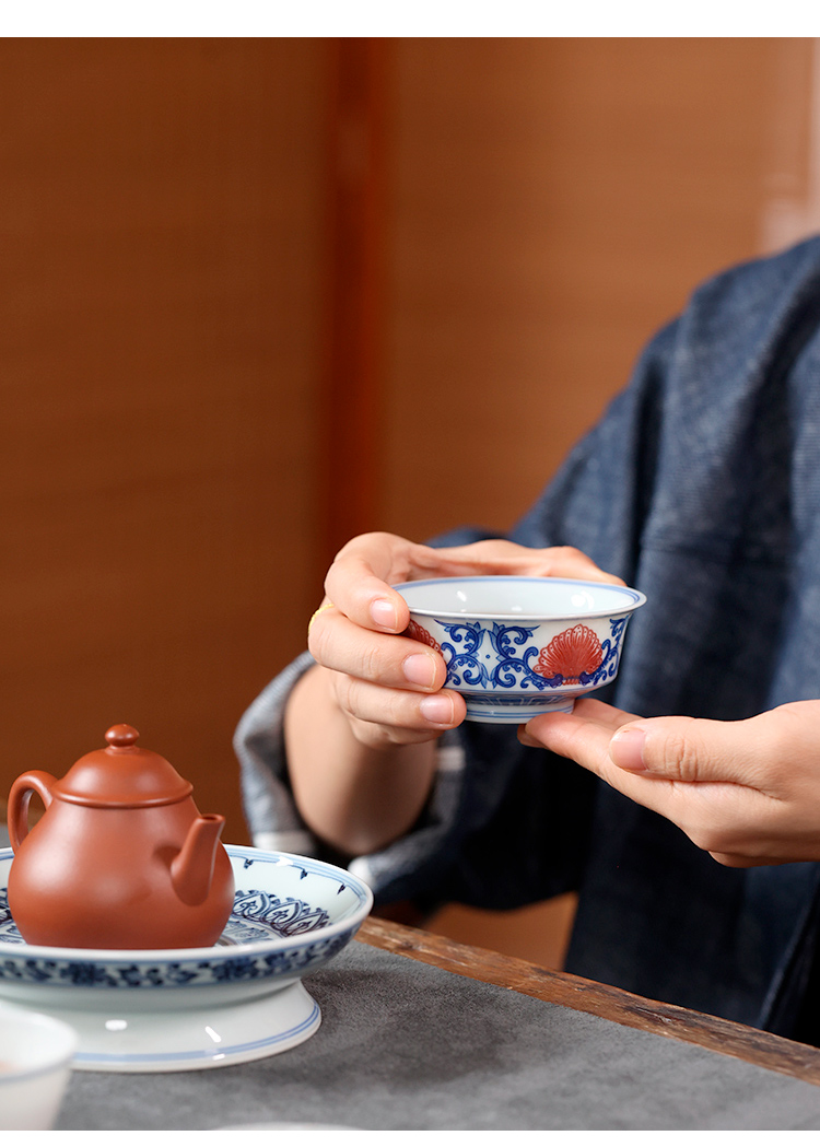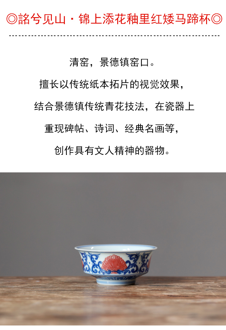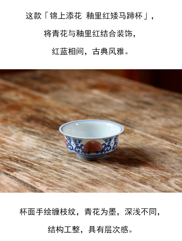 茶香记 80ml詺兮见山锦上添花釉里红矮马蹄杯青花手绘主人杯茶杯