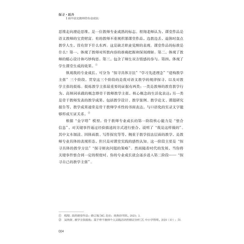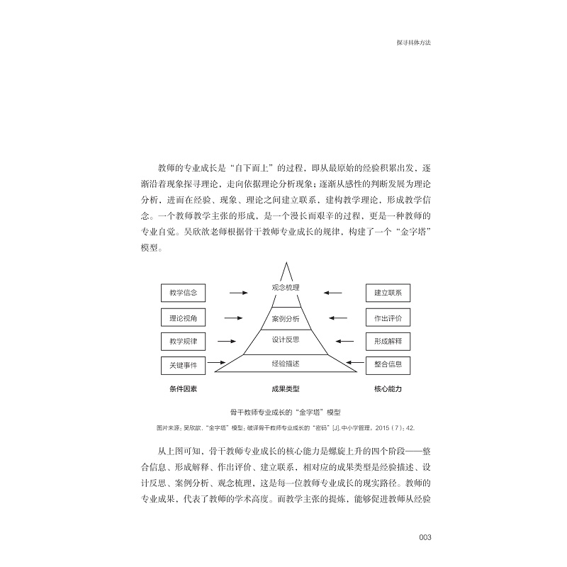 本书紧贴新课标理念,以自身的专业成长为线索,以“探寻·跃升”为关键词,体现“本真语文”的价值追求,从课堂作品中挖掘教学主张,从培训手记中学习先进理念,最后形成独特的教学风格。本书所体现的专业成长“金字塔”模型,对青年教师的专业发展具有指导性、启发性、示范性。
