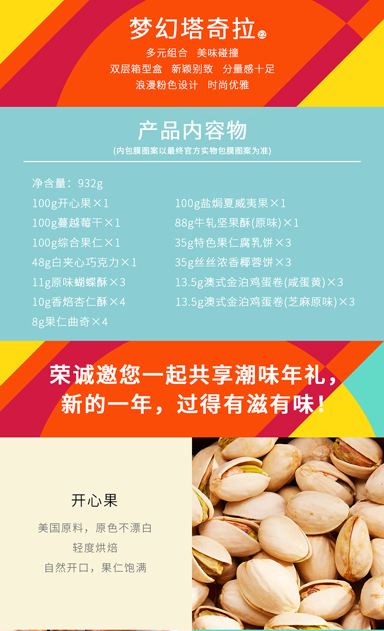 荣诚梦幻塔奇拉年货礼盒坚果杏仁酥鸡蛋卷蝴蝶酥综合果仁牛轧糖果