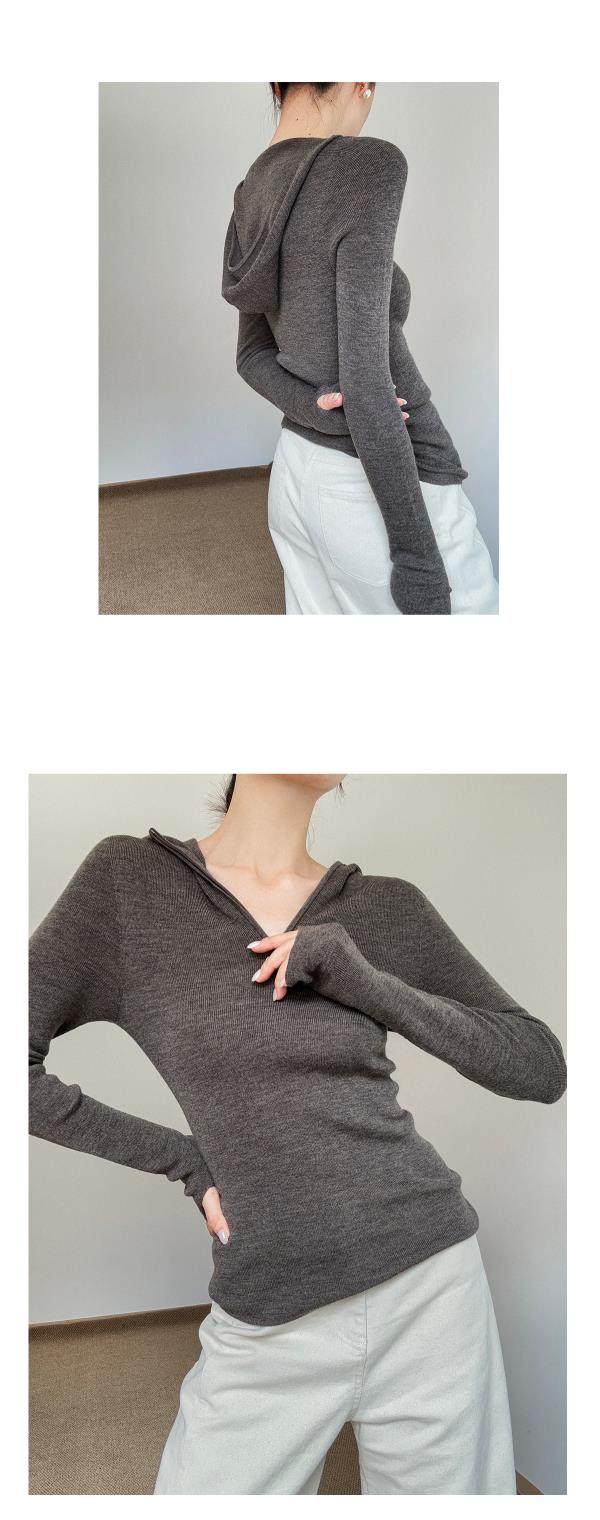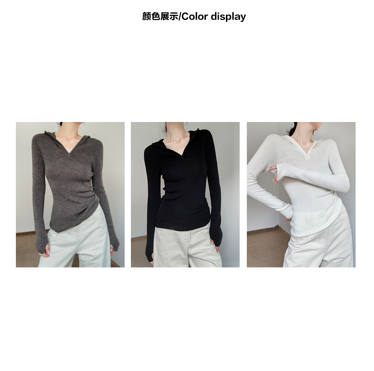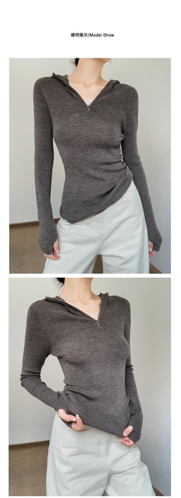 奥篇一衣多穿 连帽拉链V领修身显瘦精纺扬子纱羊毛针织衫可内搭外穿