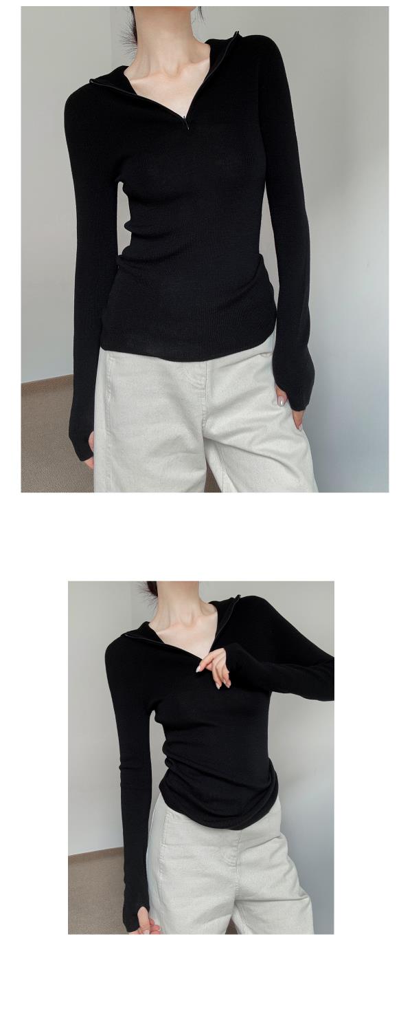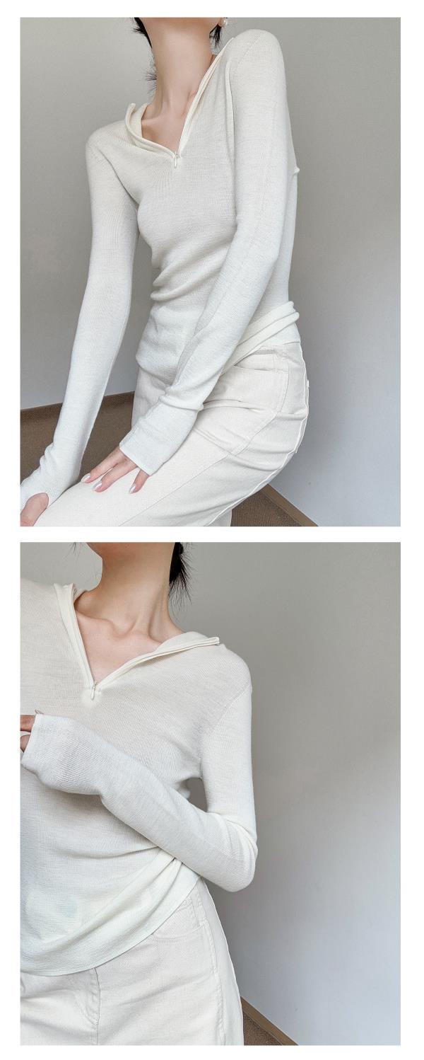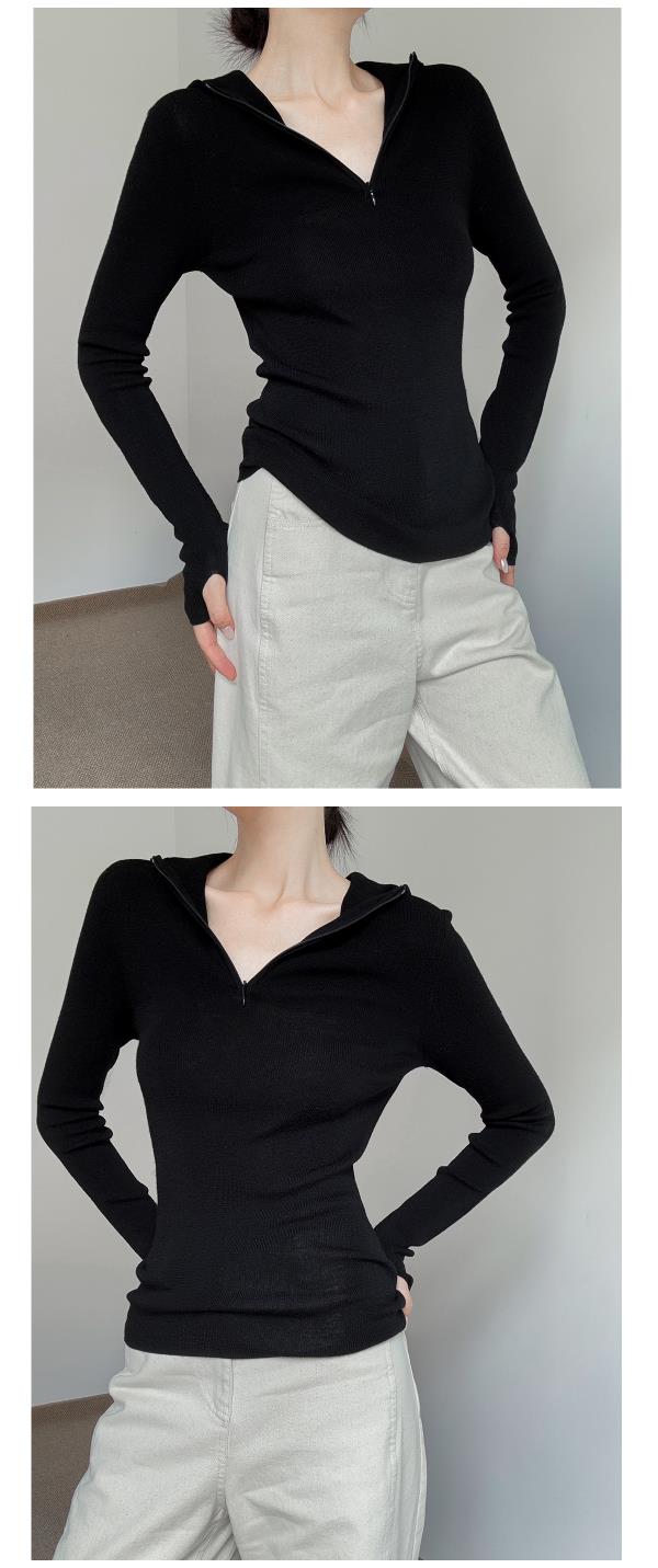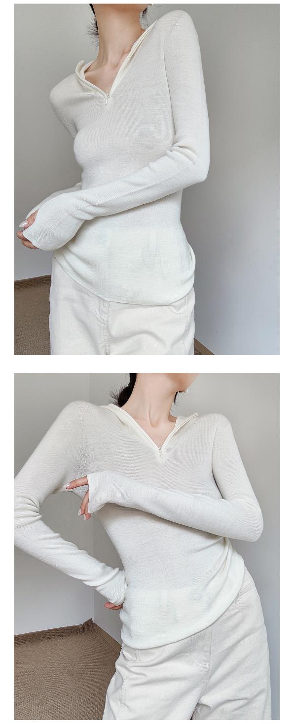 奥篇一衣多穿 连帽拉链V领修身显瘦精纺扬子纱羊毛针织衫可内搭外穿