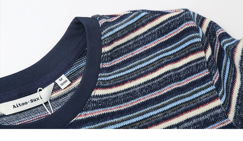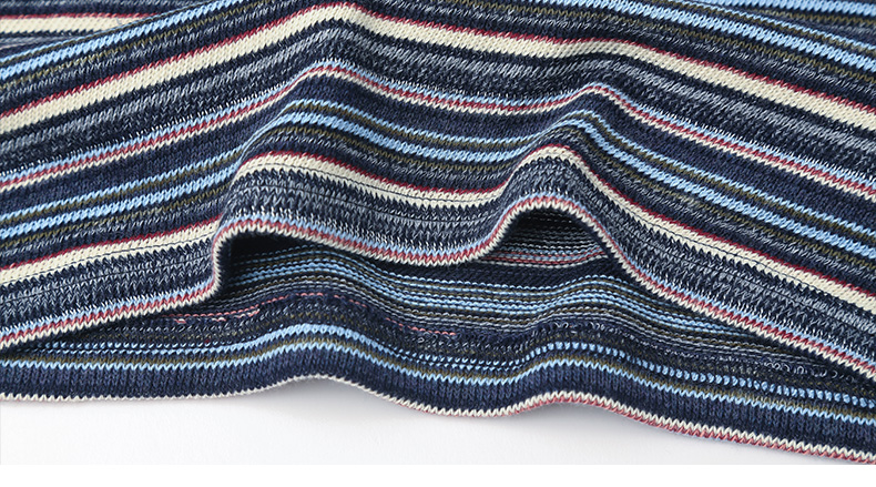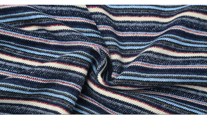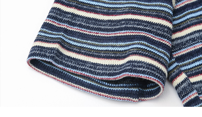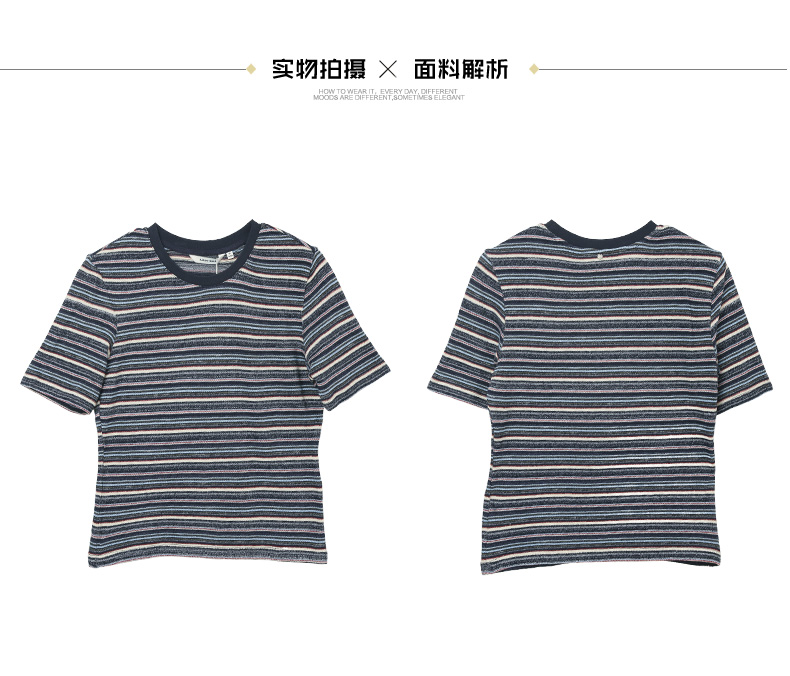 混彩条纹针织 T 恤女 2026 春夏装新品 藏青色肌理感短袖显瘦上衣