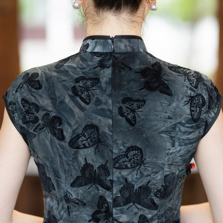 ZAYS夏季复古风老上海年轻款植绒扎染气质高级感长旗袍女 商品图3