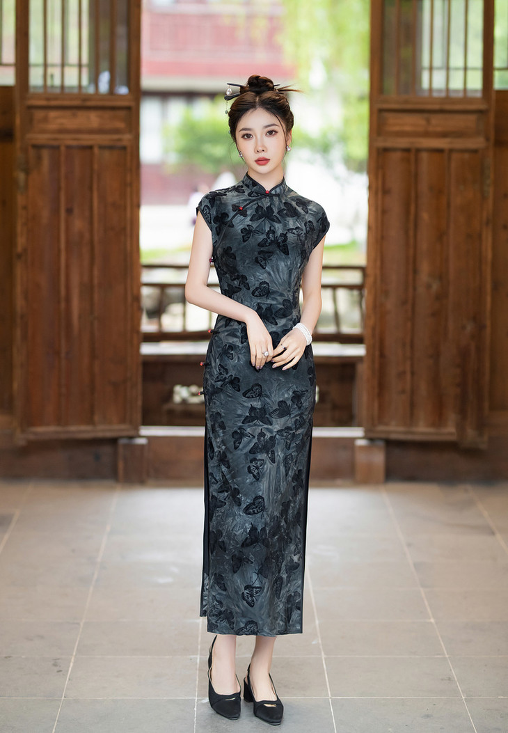 ZAYS夏季复古风老上海年轻款植绒扎染气质高级感长旗袍女 商品图0