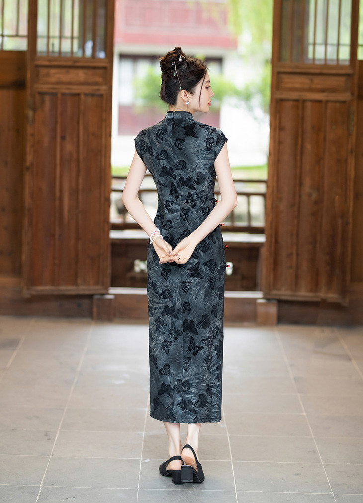 ZAYS夏季复古风老上海年轻款植绒扎染气质高级感长旗袍女 商品图4