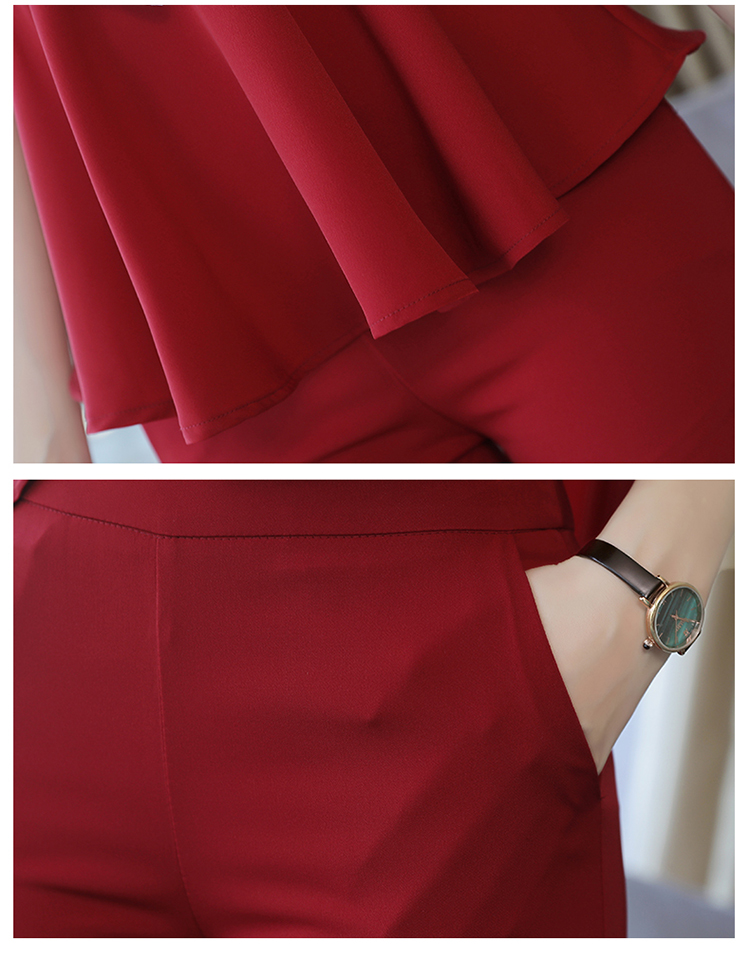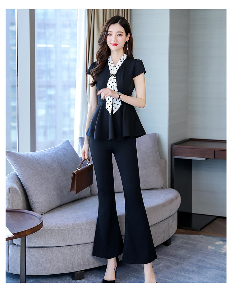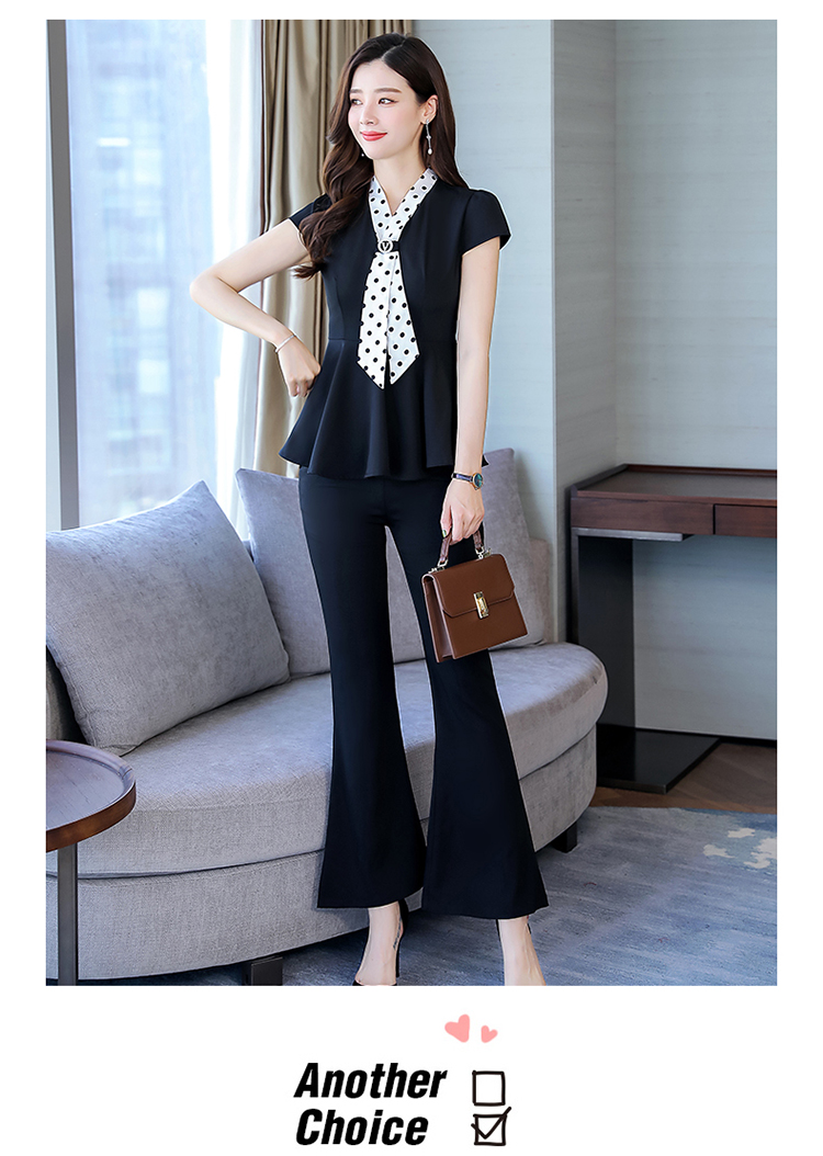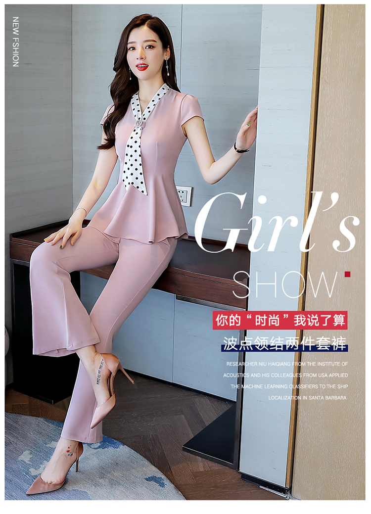 纯色上衣配休闲阔脚裤波点领结套装CS-HBLJR6961
