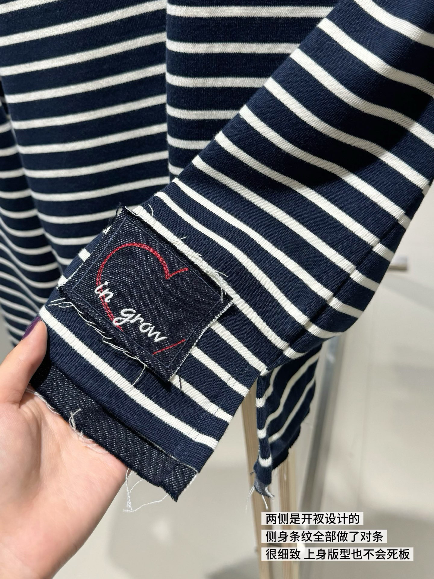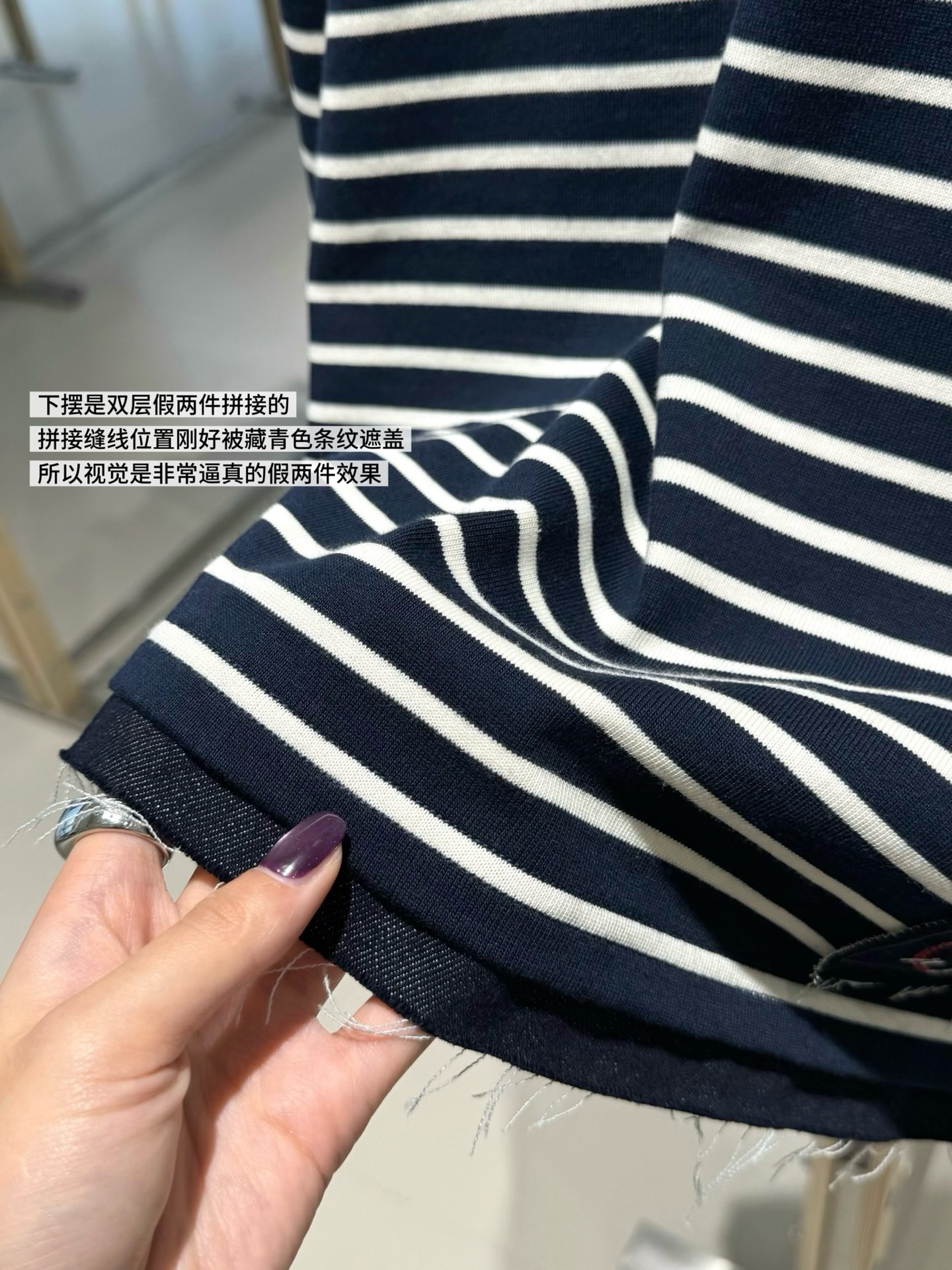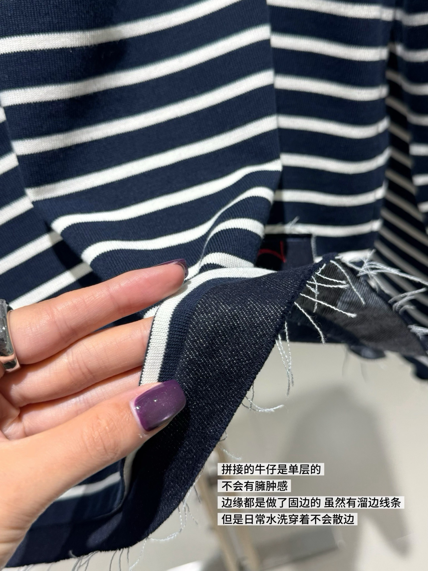 袖口、下摆都是普鲁士蓝牛仔布毛边单层拼接