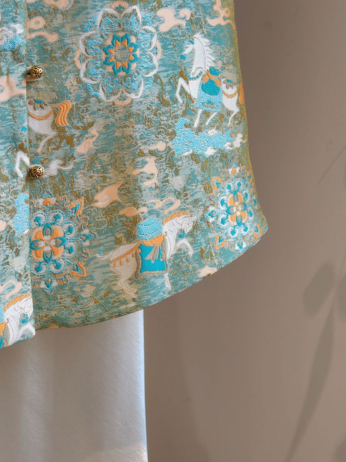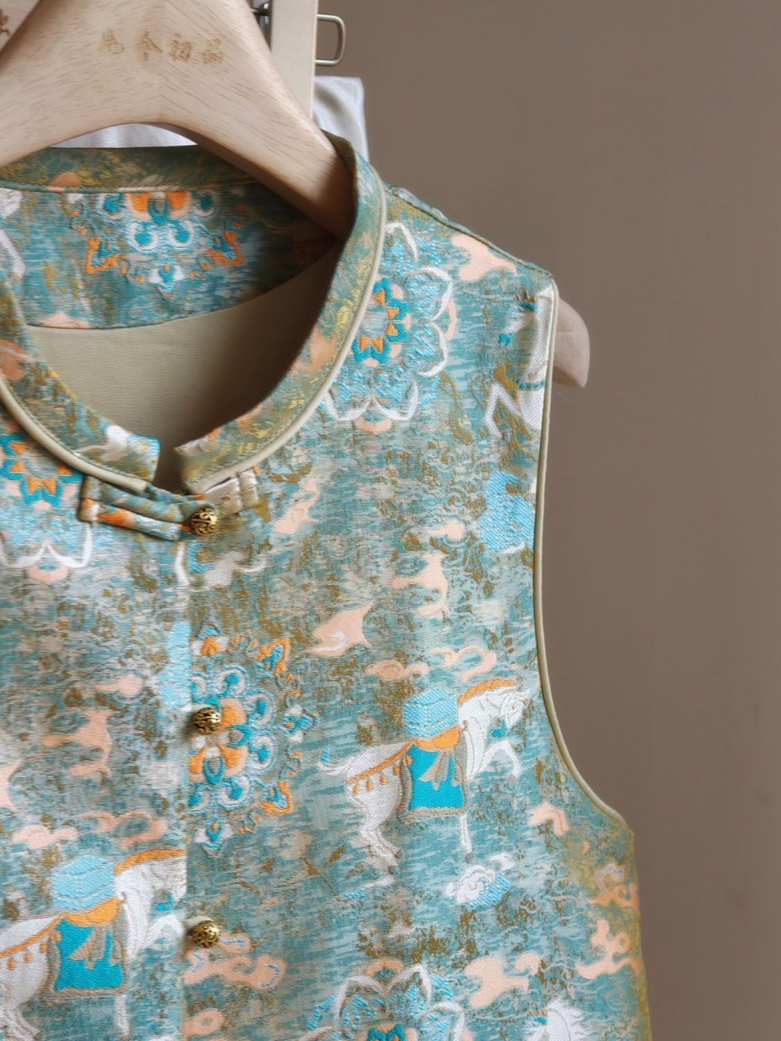 百媚生 新中式绿色提花马甲国风背心8434