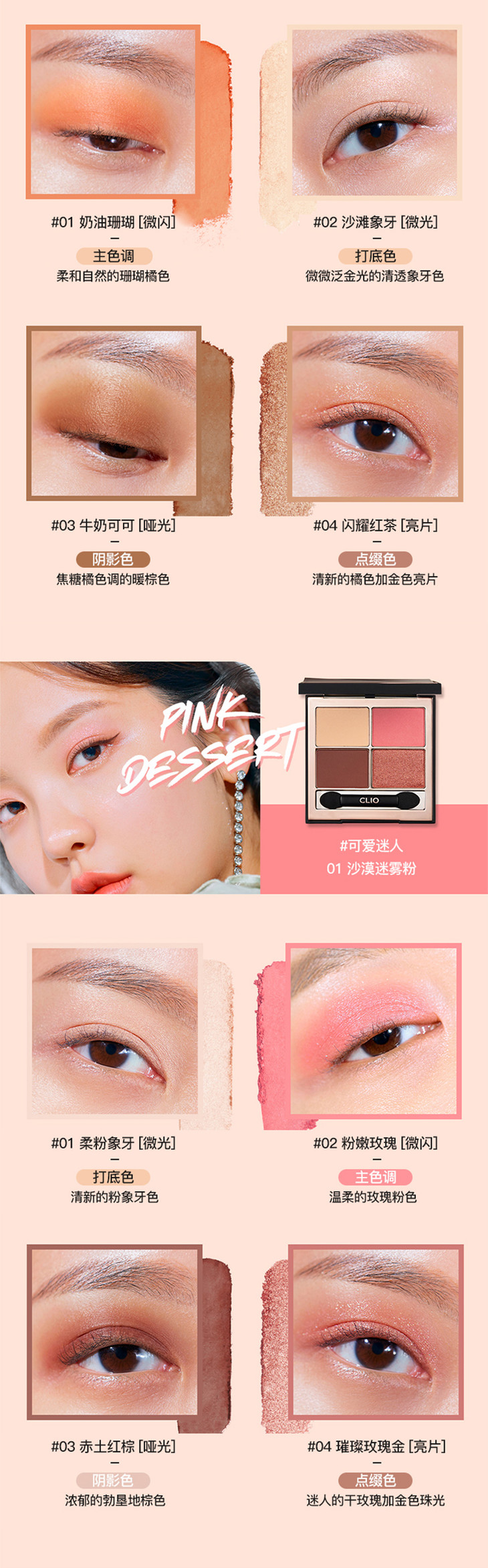 珂莱欧幻月四色眼影02沙漠迷雾粉