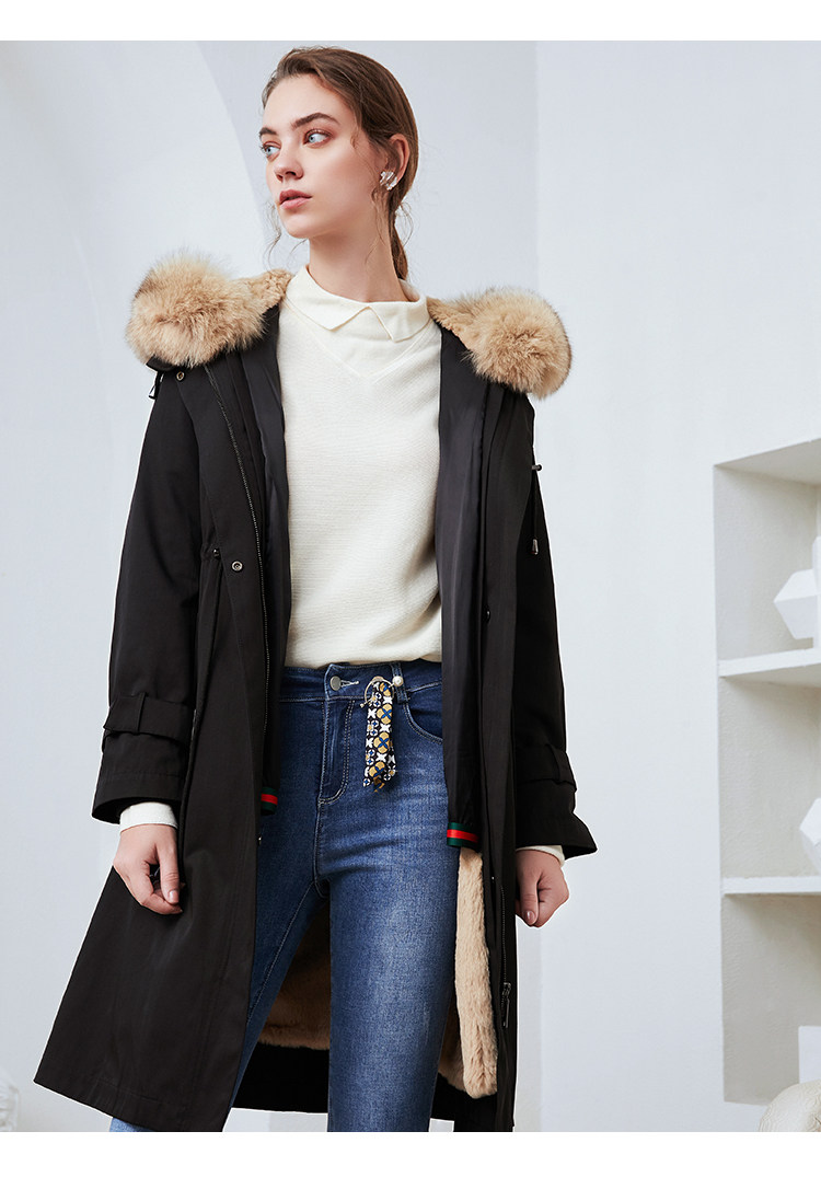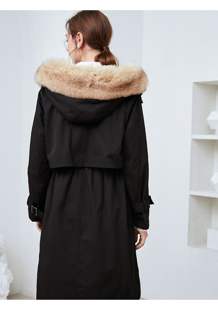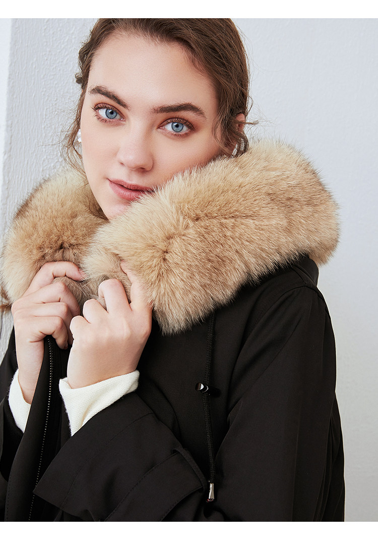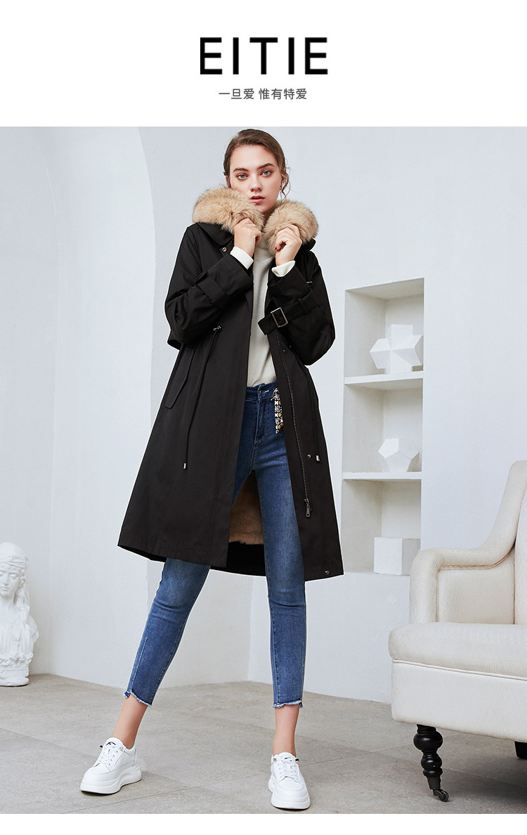 EITIE爱特爱冬季新款加厚兔毛内里狐狸毛领派克服大衣外套女6093711