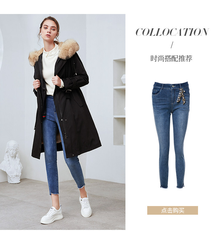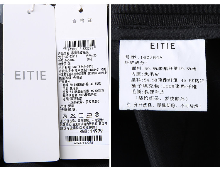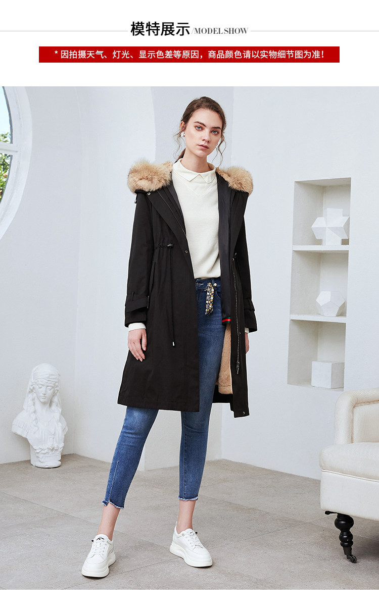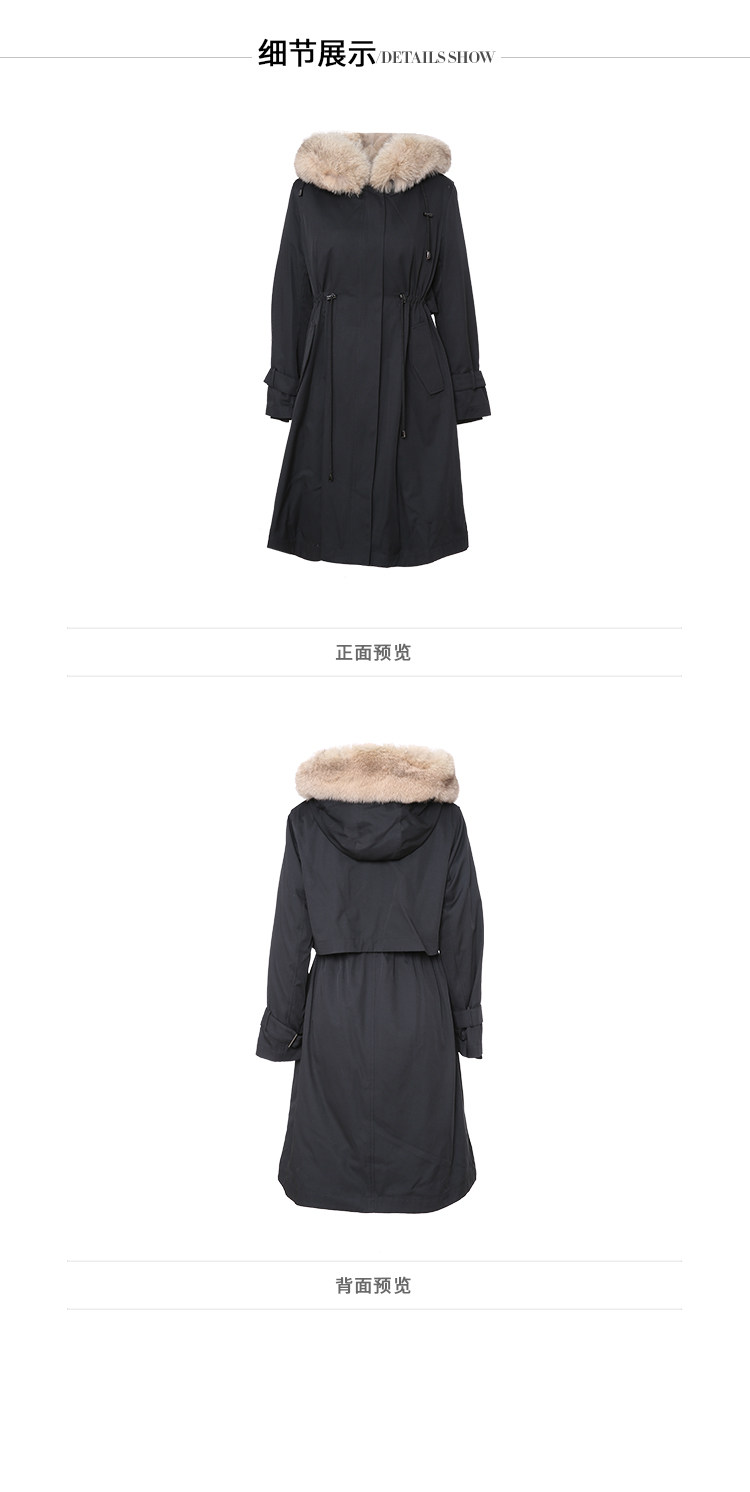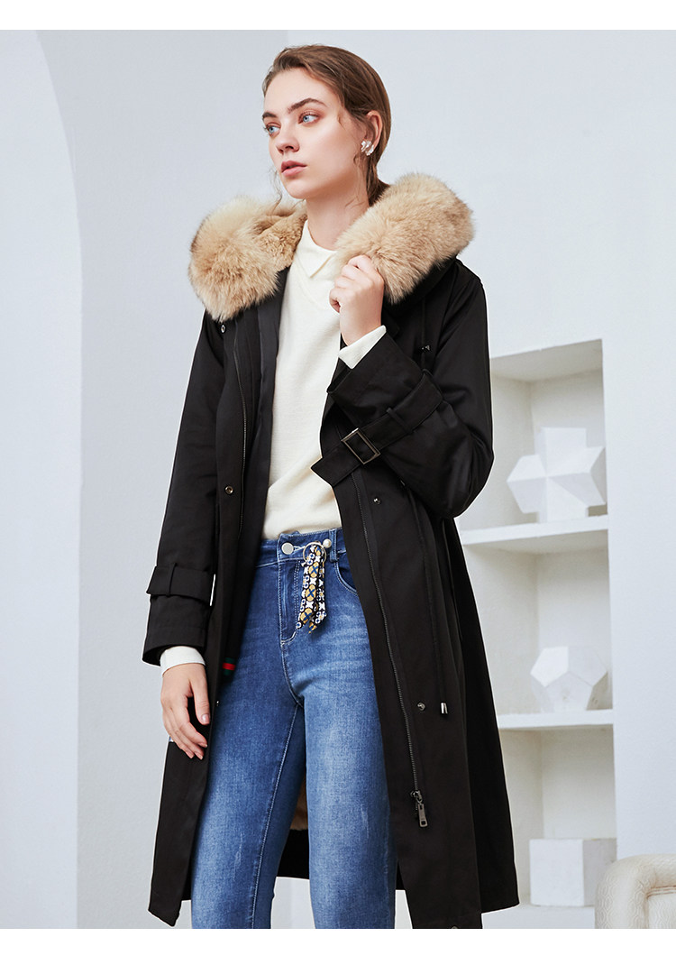 EITIE爱特爱冬季新款加厚兔毛内里狐狸毛领派克服大衣外套女6093711
