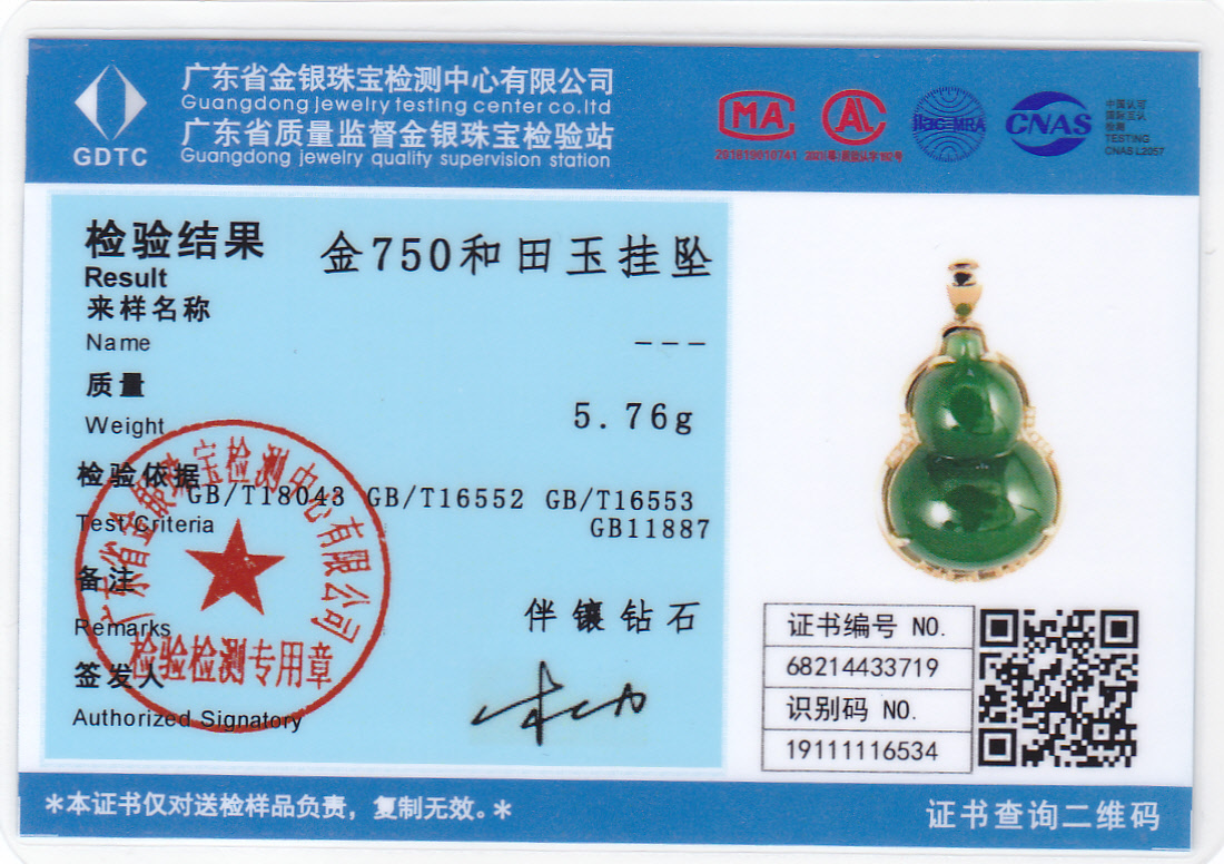 玉石尺寸:单面葫芦18*25mm/阳绿 配镶:钻石