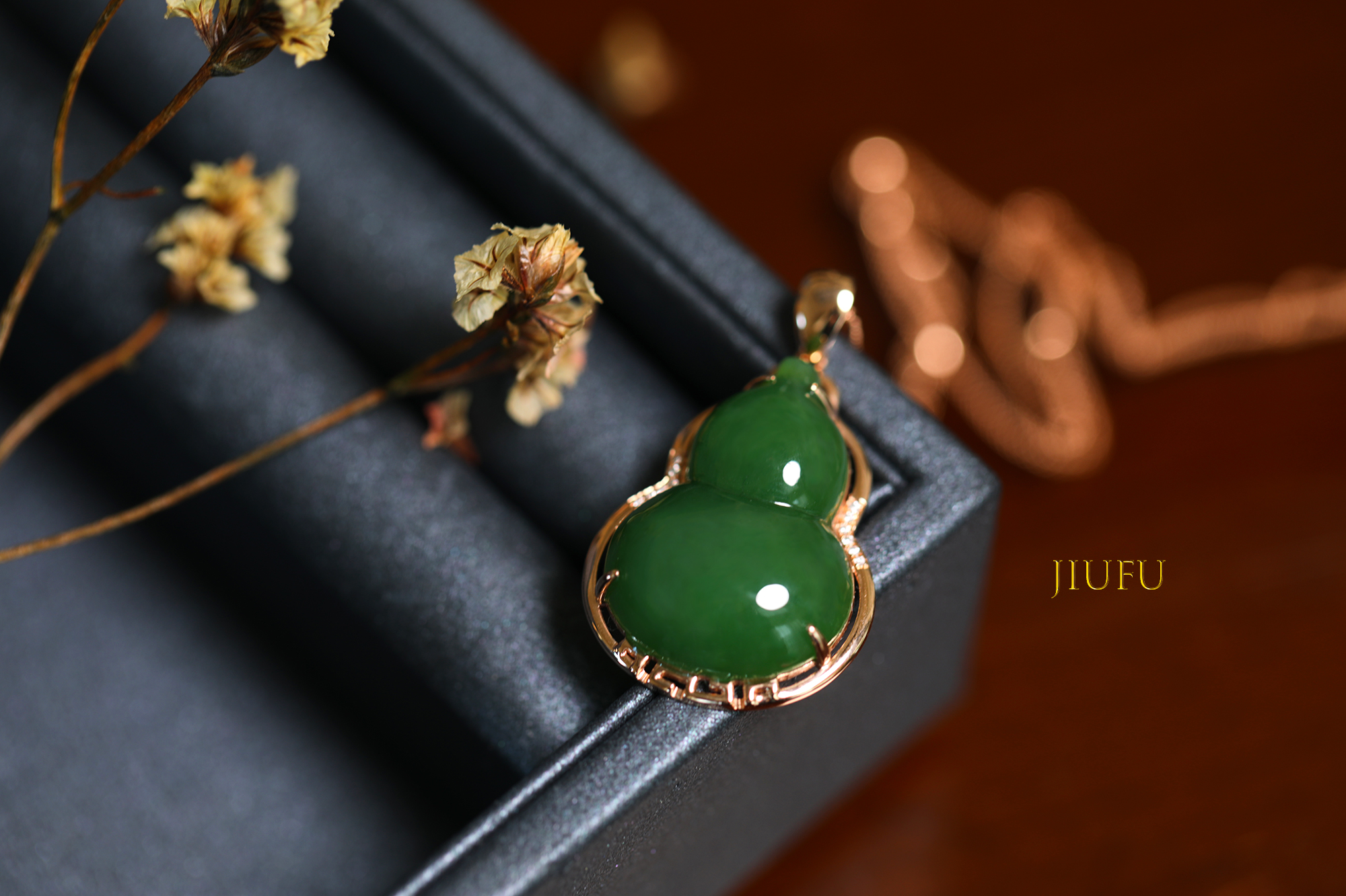 18K玫瑰金和田玉(碧玉)吊坠