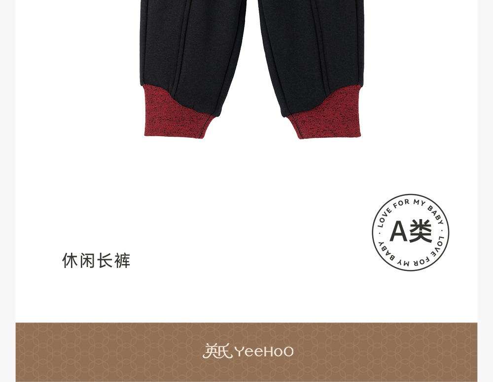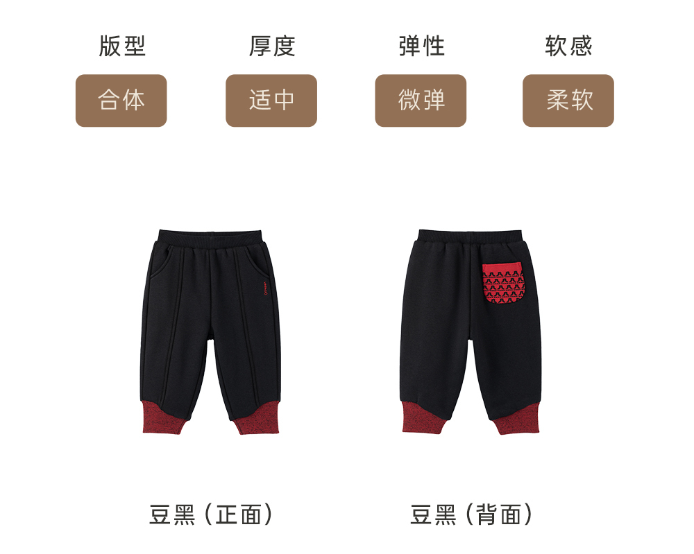 【商场同款】英氏儿童裤子男宝休闲卫裤仿羊羔绒保暖长裤秋冬