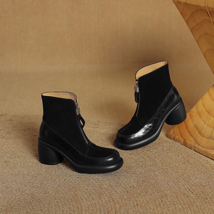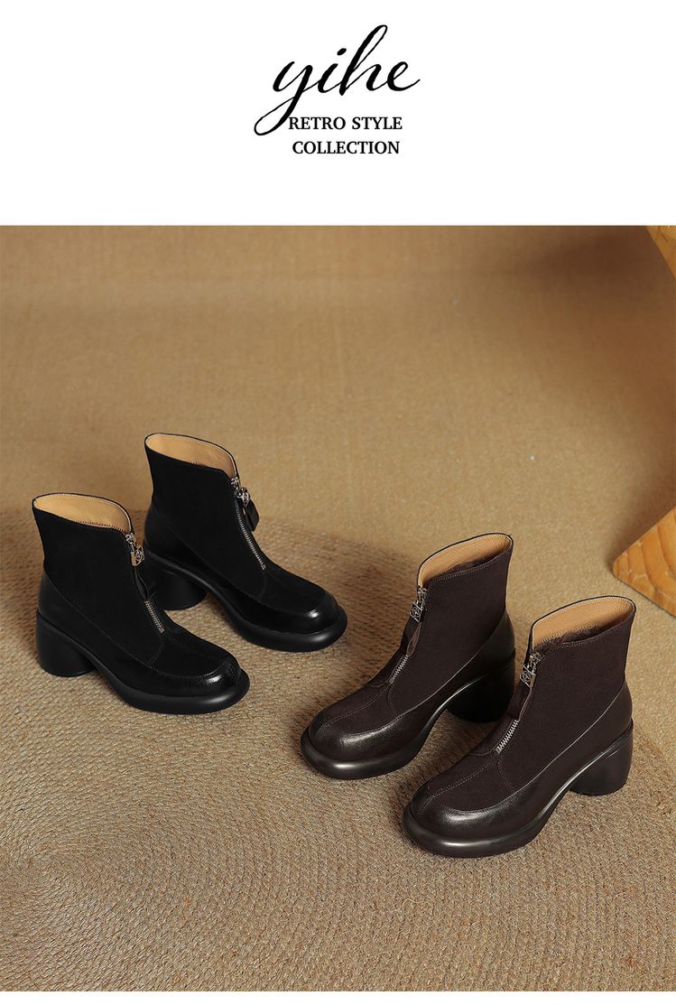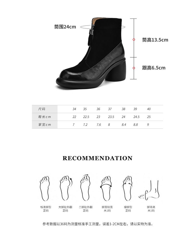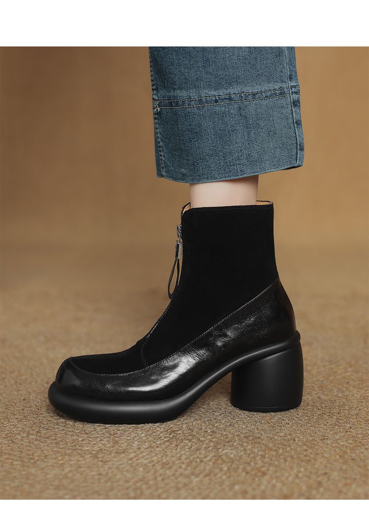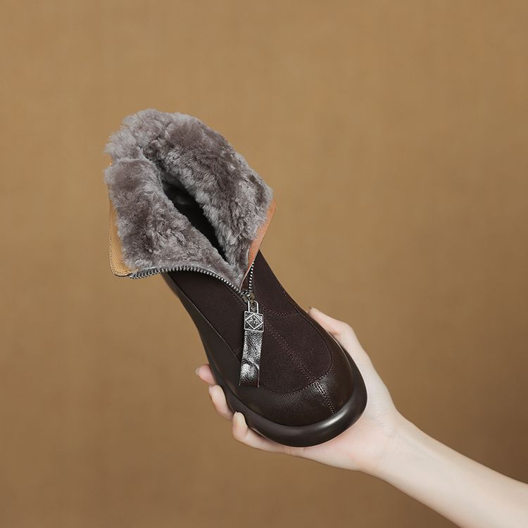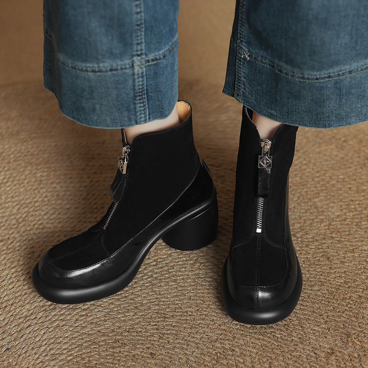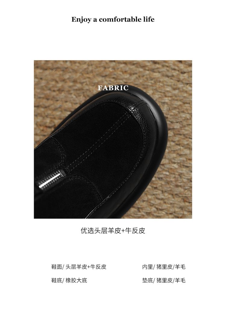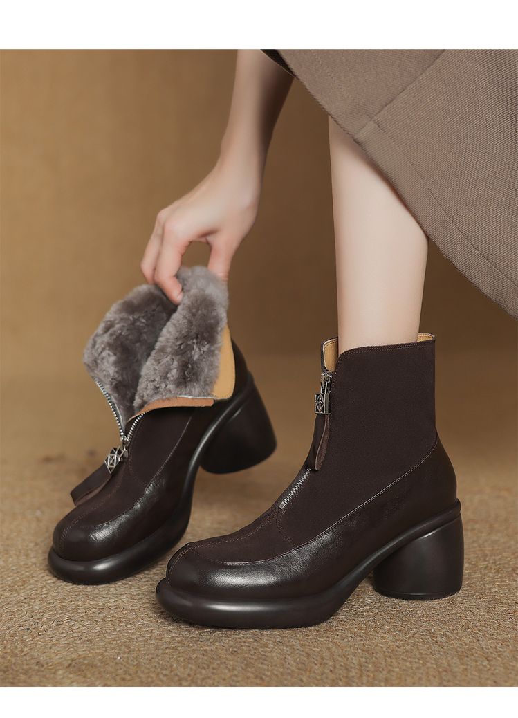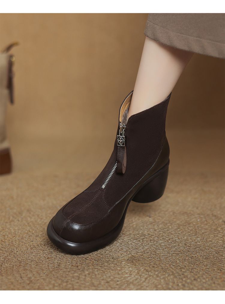 【预售5天】超轻超软加厚毛毛雪地靴秋冬季厚底牛翻皮绒面拼接粗高跟前拉链保暖短靴女ZYY&A1056-1