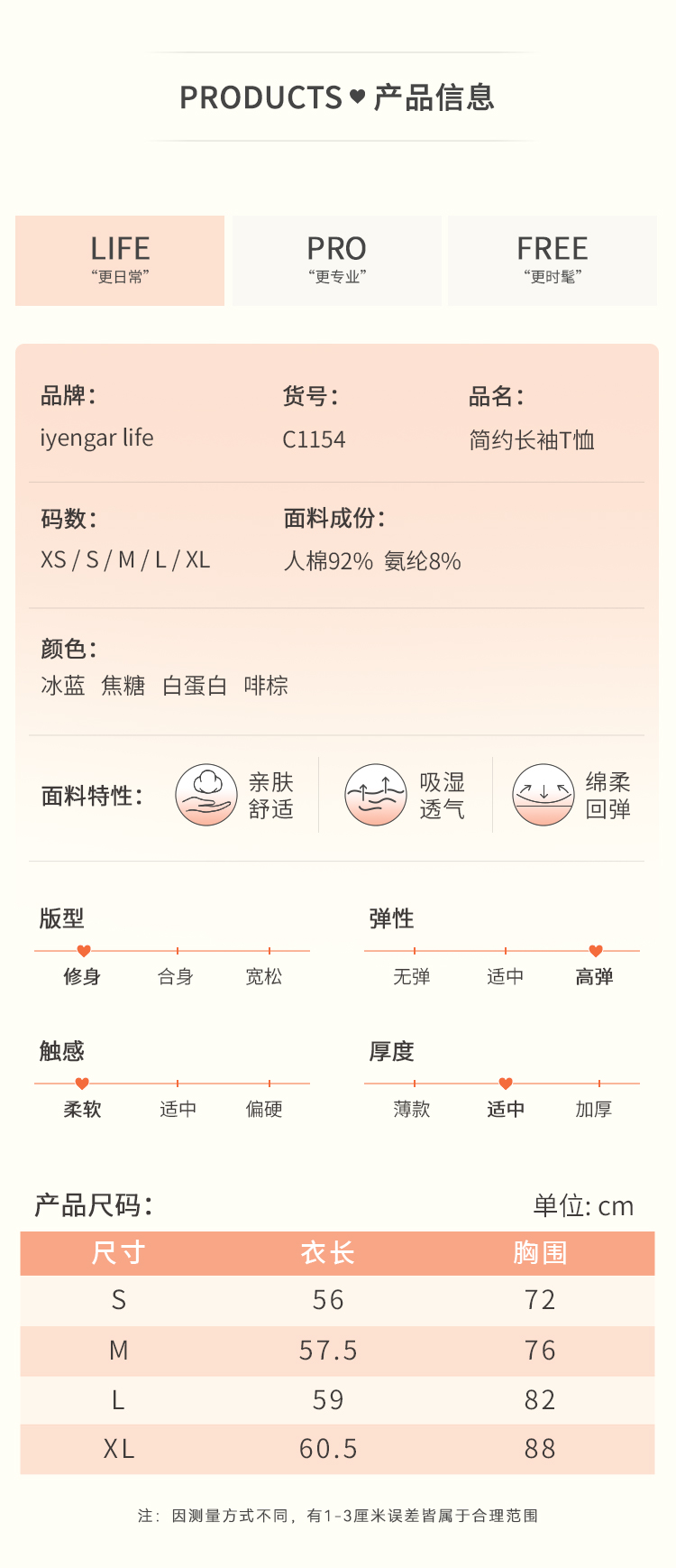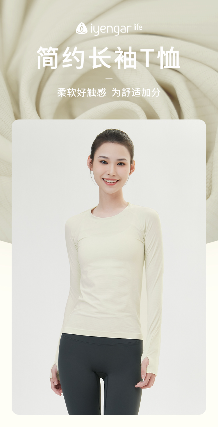 艾扬格life C1154简约长袖女款瑜伽T恤 秋冬运动瑜伽T恤