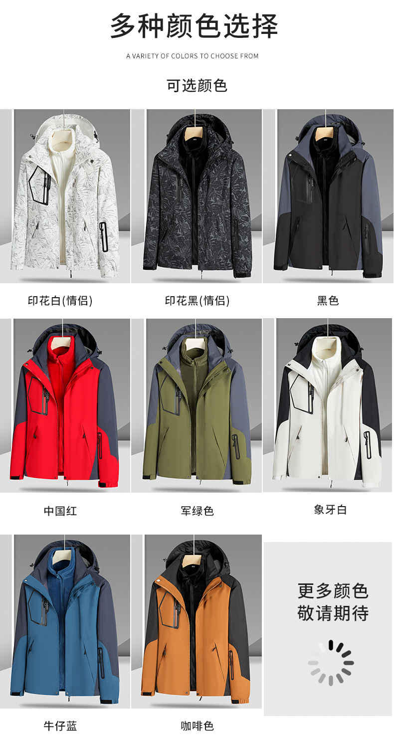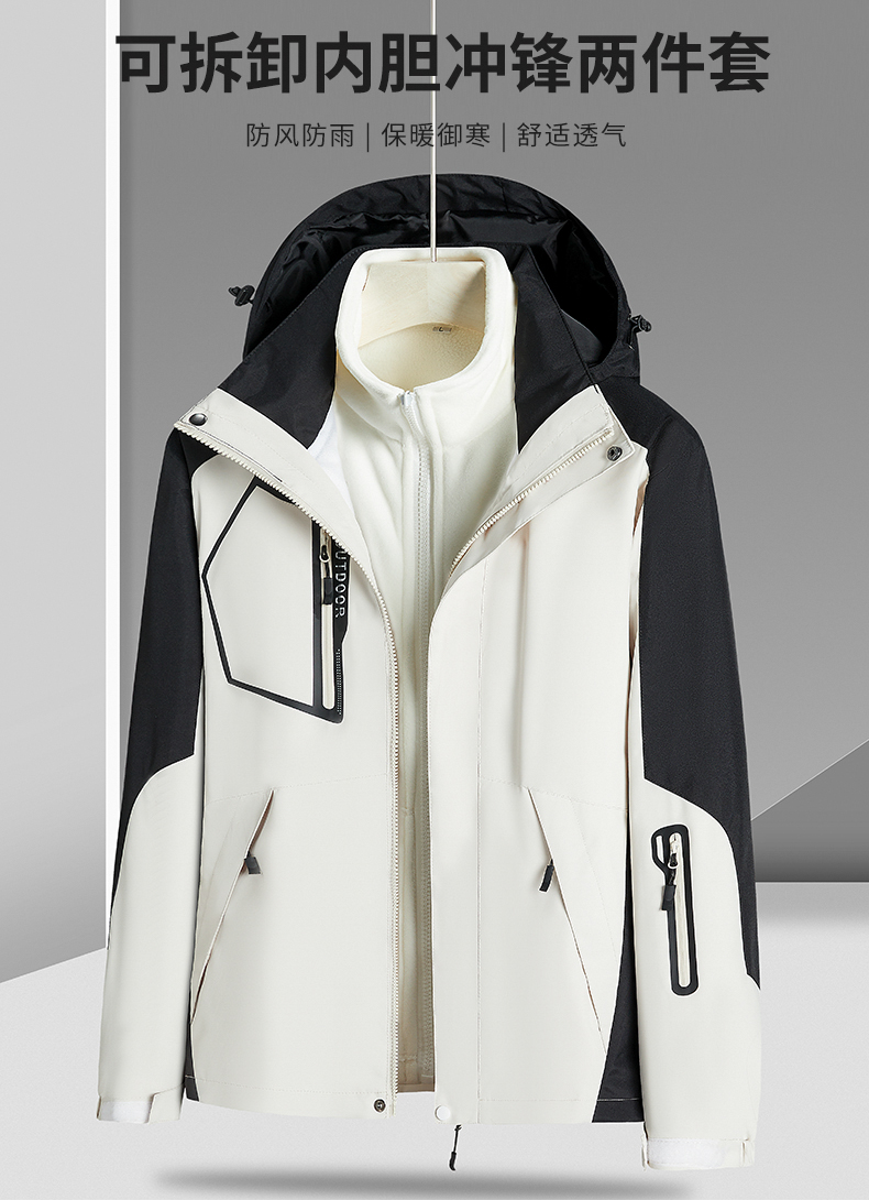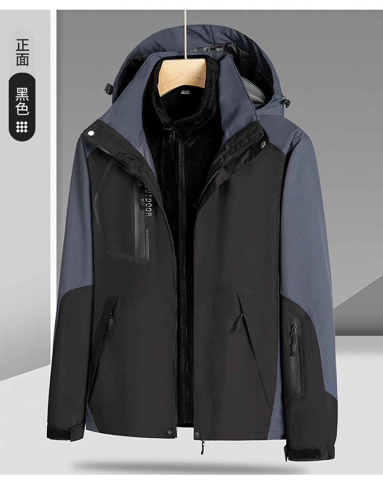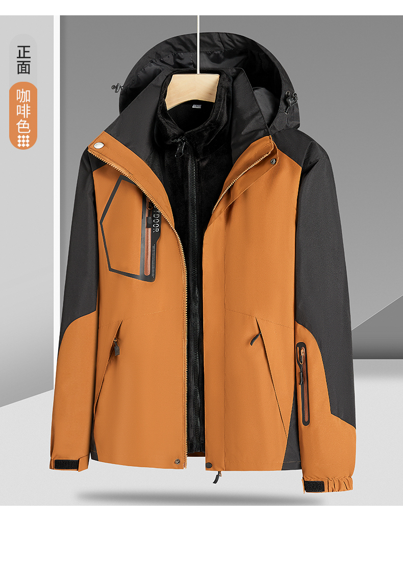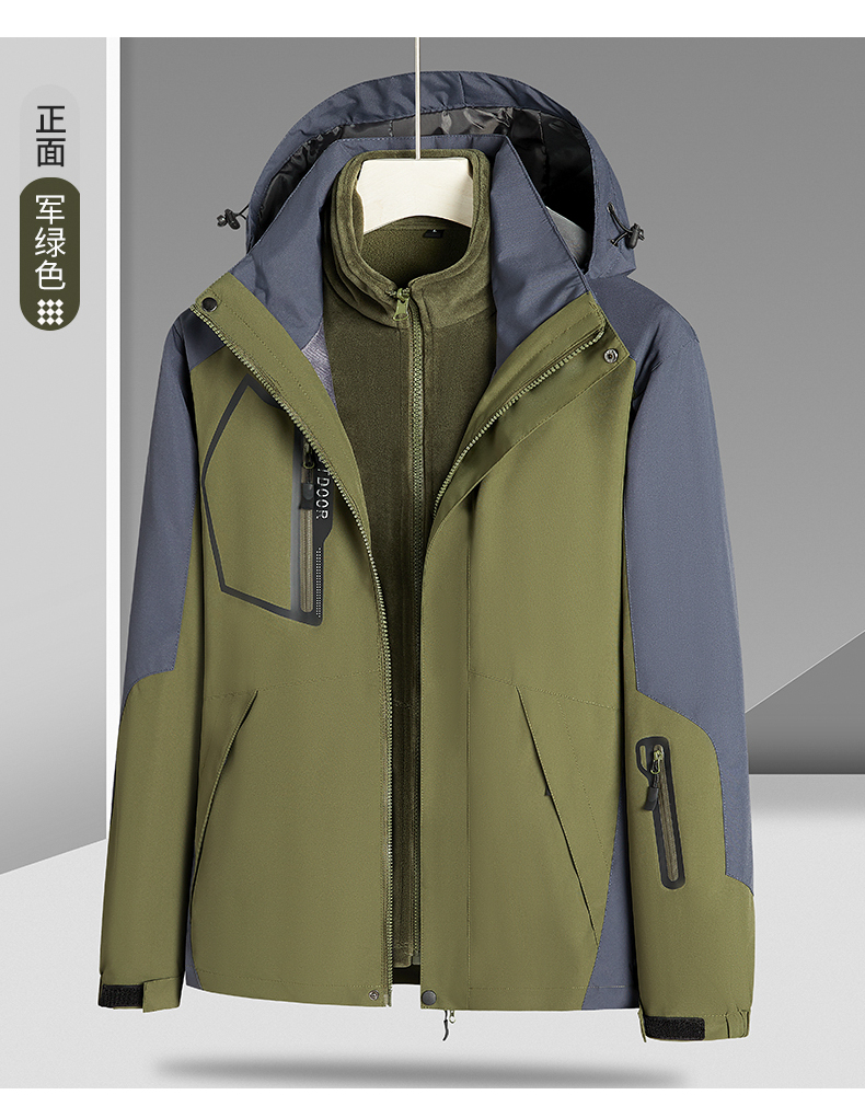 【Q】【新款DNY】大依优型大码三合一冲锋衣加绒保暖两件套内胆可拆防风防水户外加肥加大号外套男士上衣